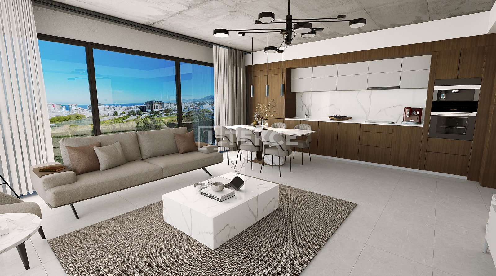 The apartments for sale in Girne, North Cyprus feature large windows, spacious balconies, and open-plan kitchens that create bright living spaces. The materials used in the interiors combine durability with aesthetic integrity. The apartments also stand out for their functional design. They are ideal both for those who wish to live in the heart of Girne and for those seeking a profitable investment with high potential returns.