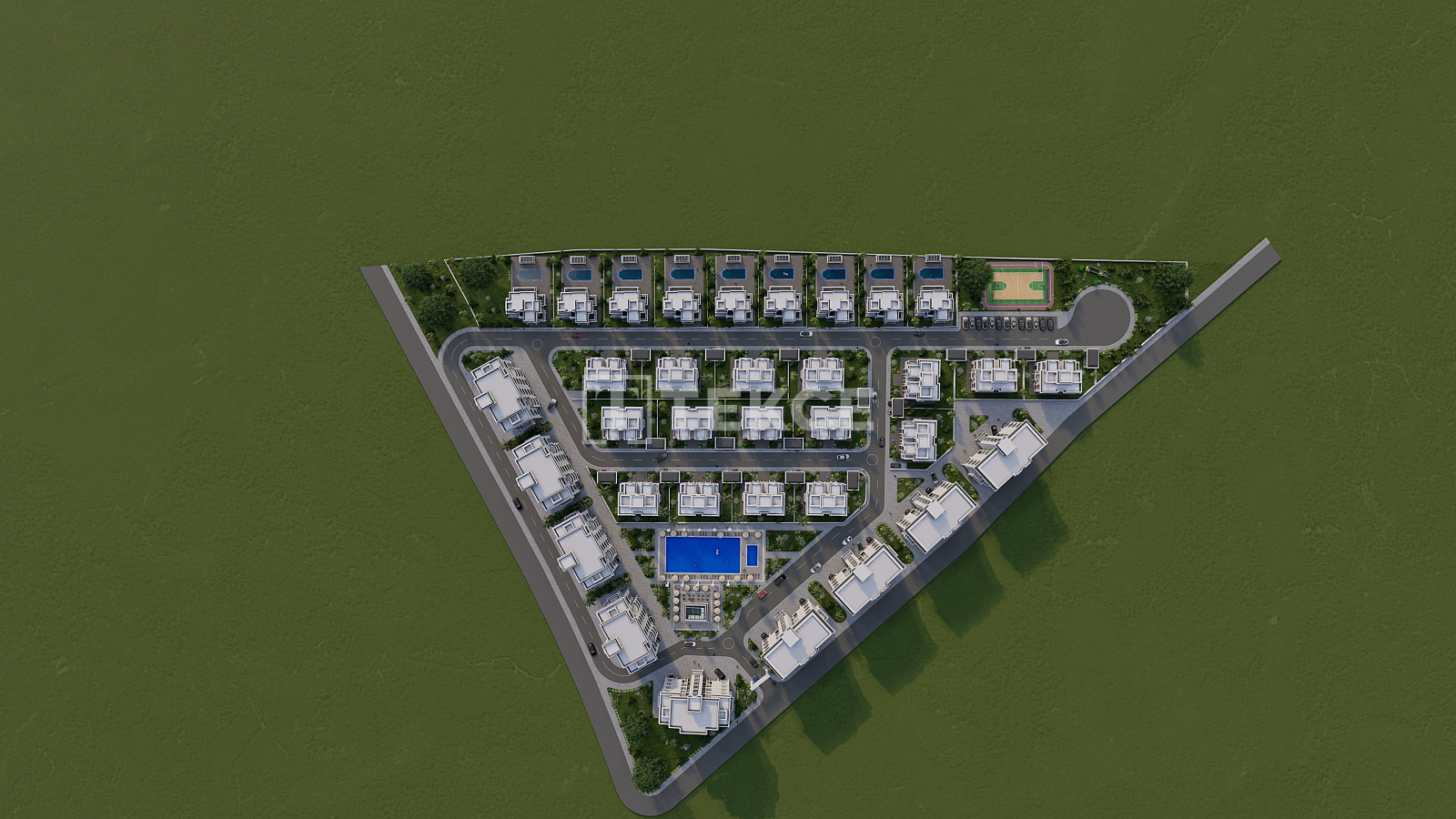 The real estate for sale in İskele, North Cyprus is just on the İskele-Karpaz main road. The project is also 800 m from the sea, 1 km from a sandy beach, 3 km from Boğaz Marina, 8 km from İskele center, 11 km from Pera MacKenzie Beach&Club, 20 km from Near East College and its hospital, 24 km from Gazimağusa center, 60 km from Ercan Airport, and 80 km from Larnaca International Airport.