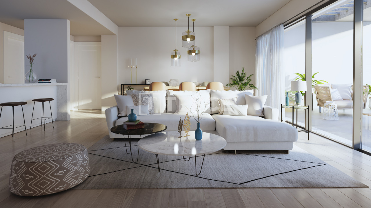 The apartments are designed to make the most of natural light, featuring generous interiors with large windows, that will fill your home with natural light. Apartments boast spectacular sea views from their terraces. Kitchens are fully fitted with high-quality appliances, and the apartments come equipped with hot and cold air conditioning and underfloor heating. All materials used in the construction and finishes are top of the range.