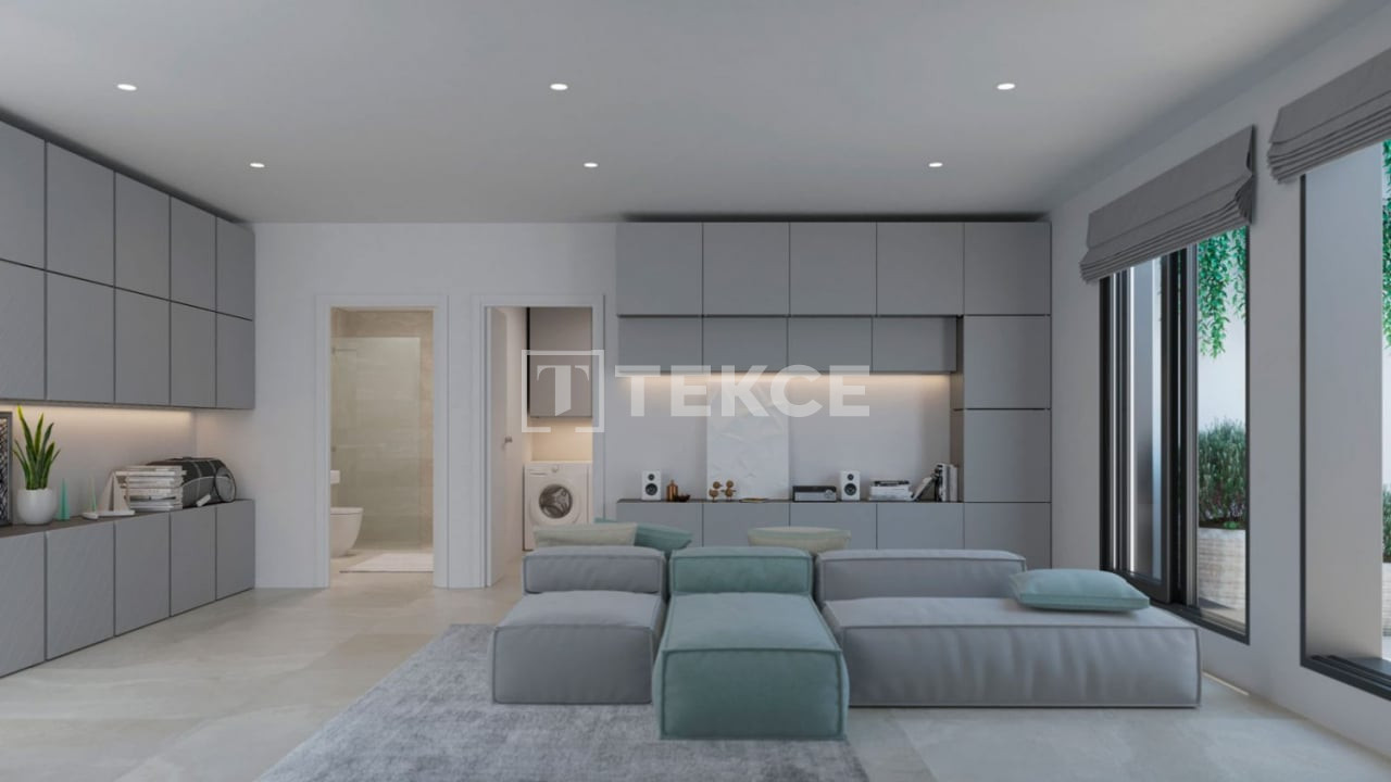 The semi-detached houses in the project have large rooftop solariums and private gardens. Also, the real estate in the project has an opportunity to transform their designs from 3-bedroom to 2-bedroom. The semi-detached houses are equipped with an air-conditioning system, underfloor heating system, centralized aerothermal system, electronic video answer system, and equipped kitchens with appliances.