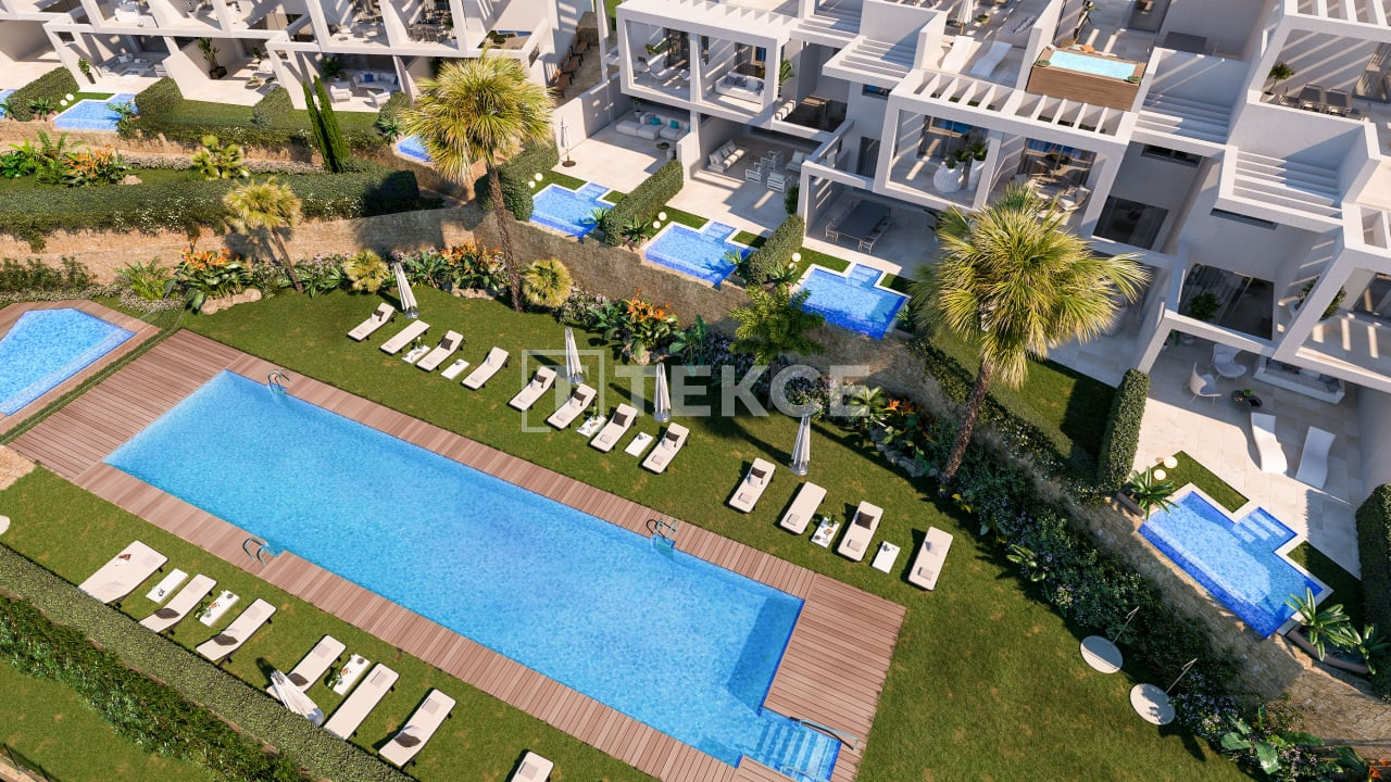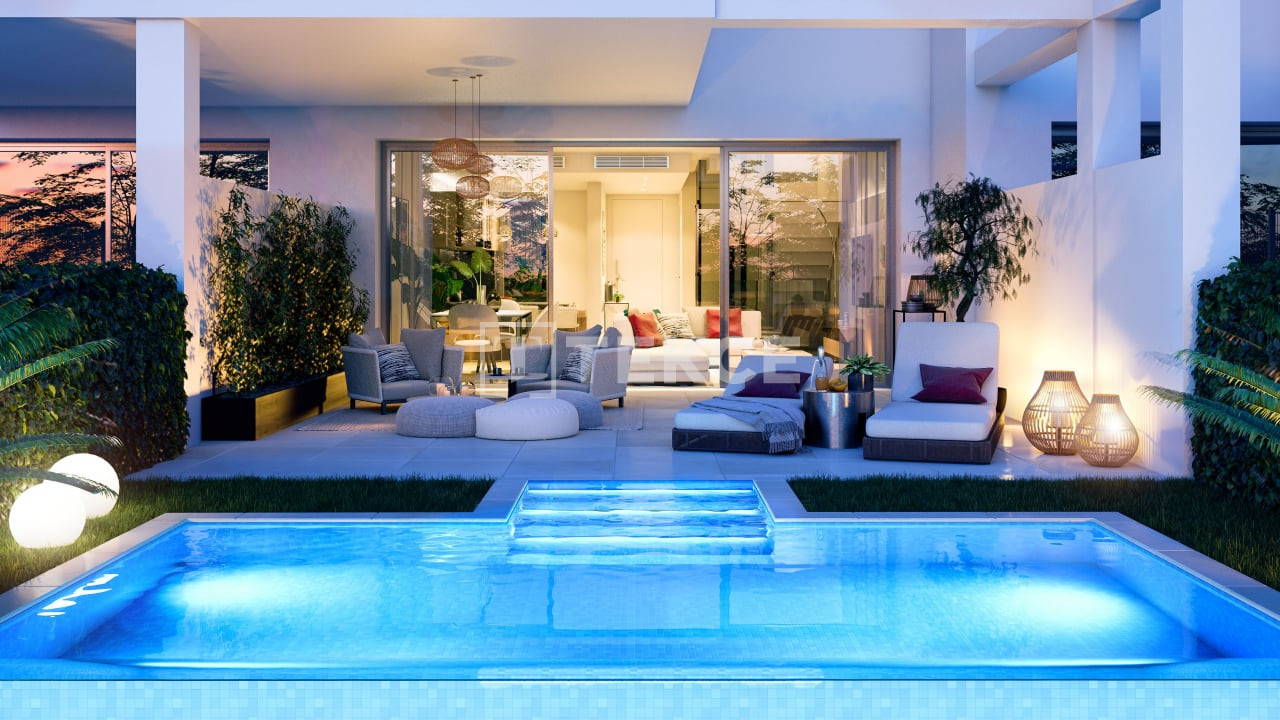 The townhouses offer customization options such as a private pool in the garden, a jacuzzi or pool in the solarium, a barbecue area in the solarium, an automatic entrance to the garage, or a panoramic lift.