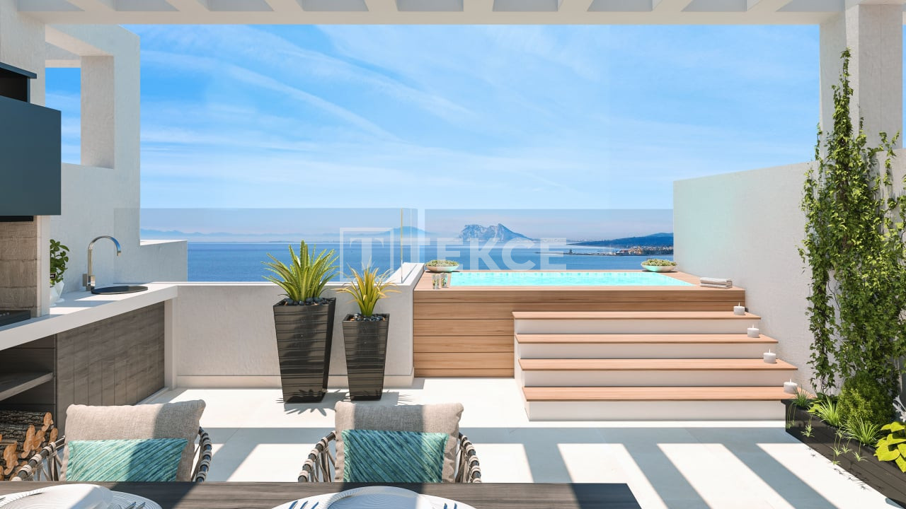 The townhouses have south and southwest orientations. The townhouses are equipped with fitted kitchens, bathrooms, wardrobes, and double-glazing windows. The terraces of the townhouses offer unique sea and Gibraltar views.