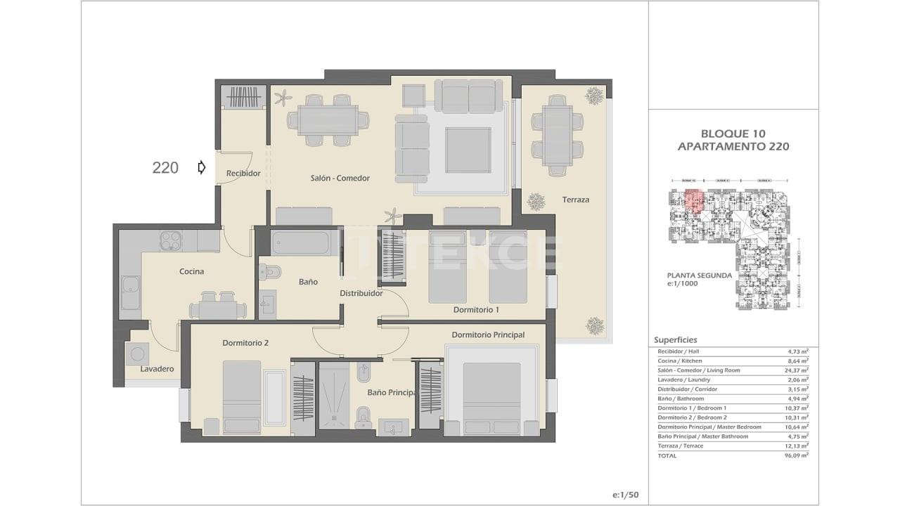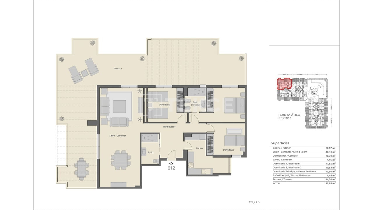 The new-built apartments are situated in a complex with a rooftop swimming pool, garden, lift, and indoor car park.