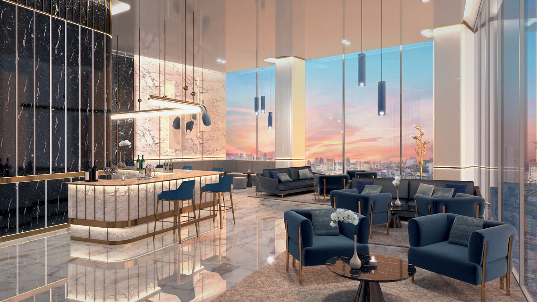 • Infrastructure: outdoor pool and solarium, fitness center, coworking, children's playgrounds, panoramic rooftop bar and restaurant, garden and recreation areas
