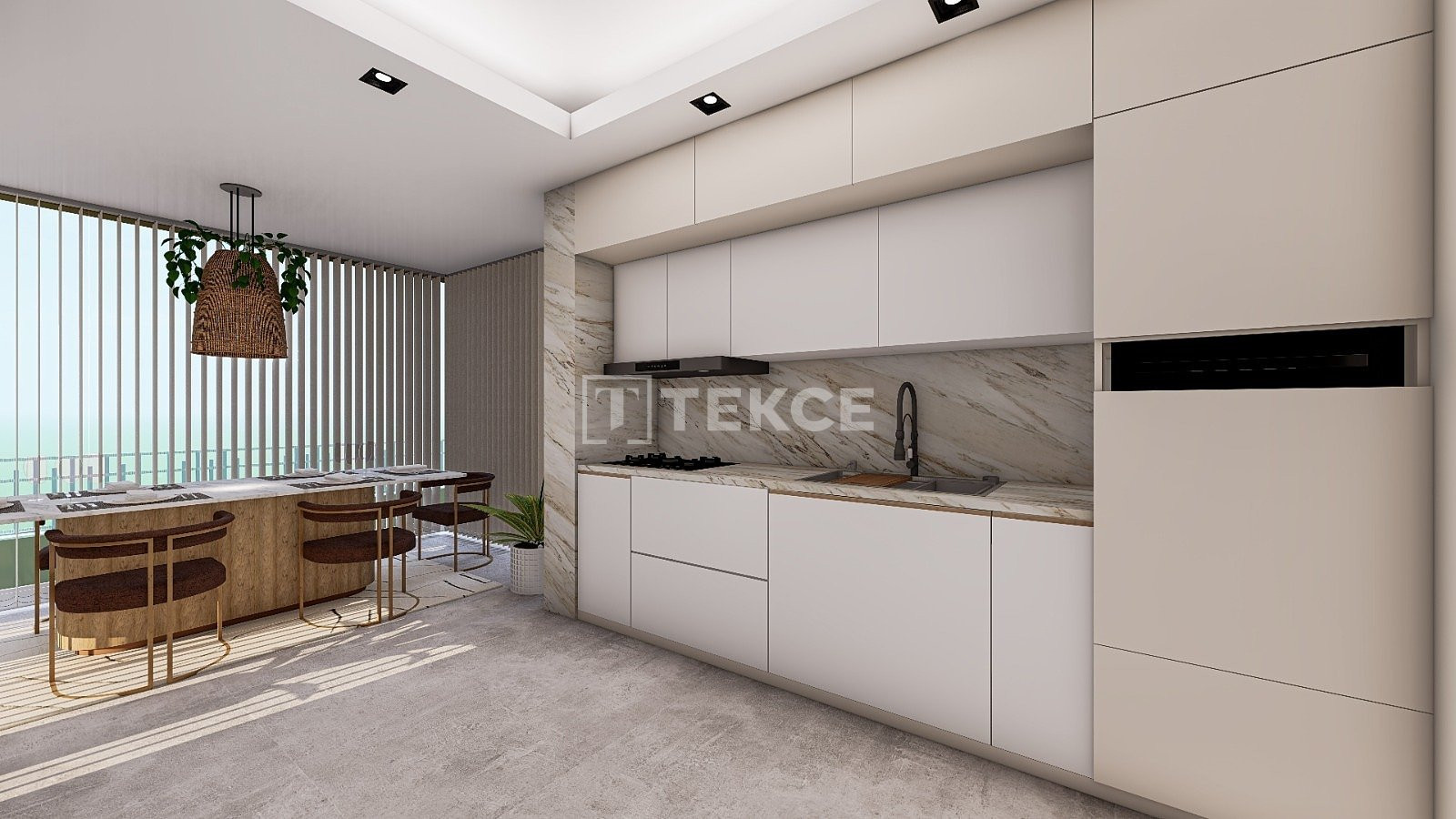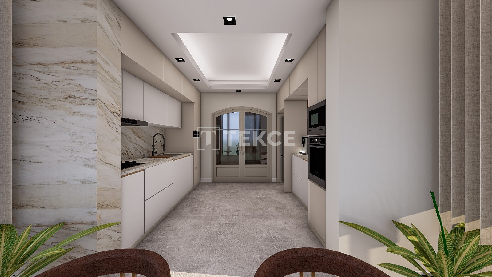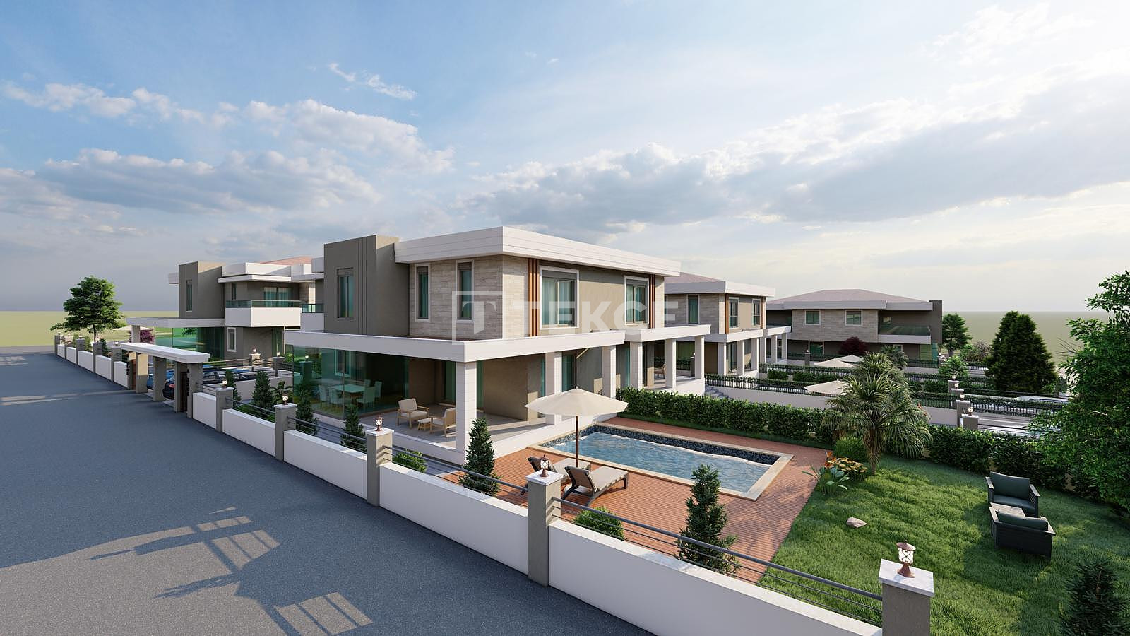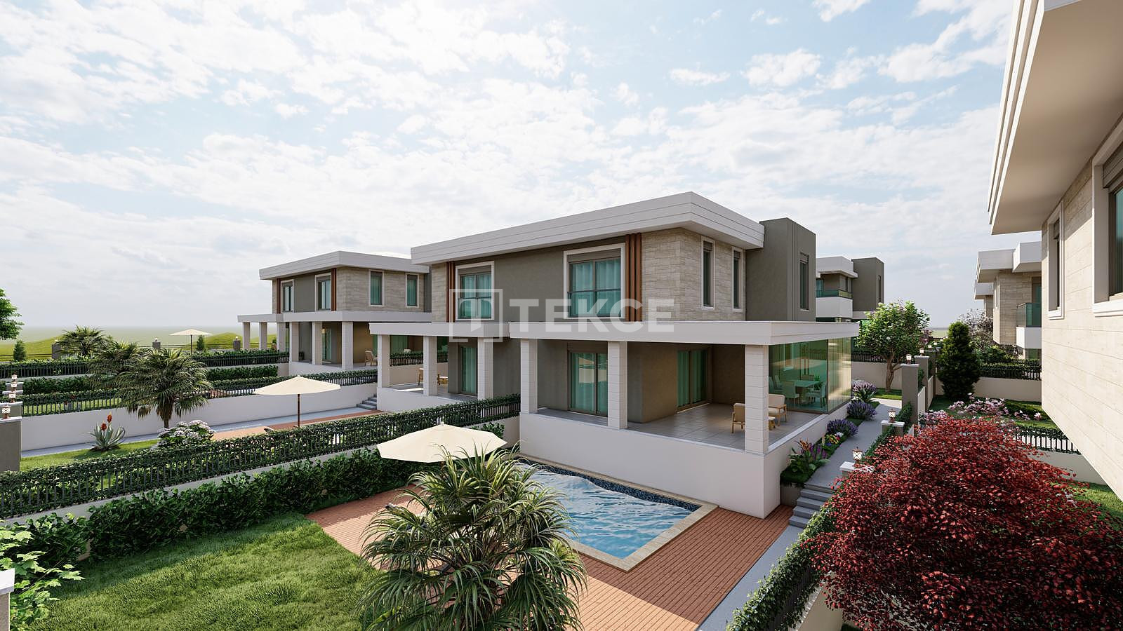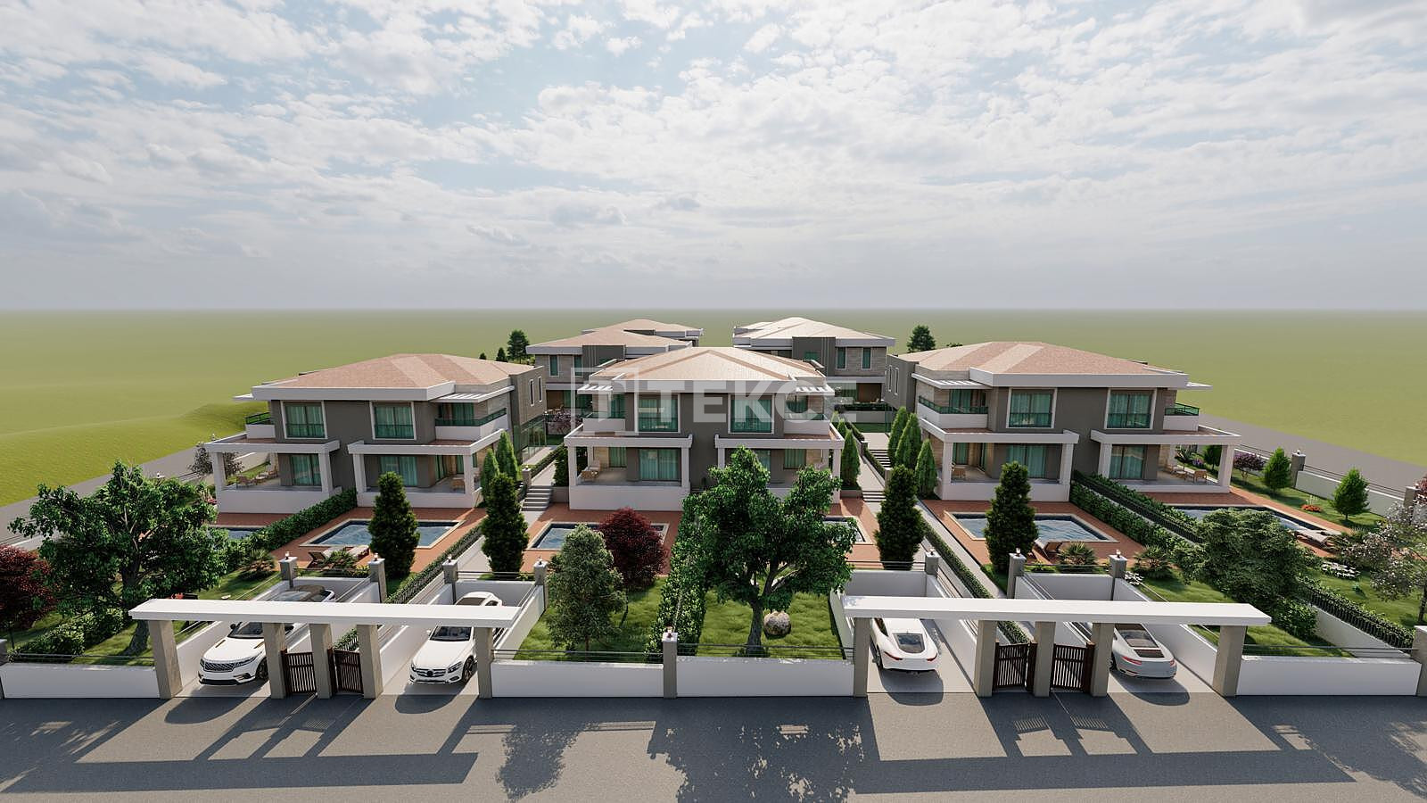 The project includes 4 and 5-bedroom villas with private pools and gardens. These villas are constructed on a 300 - 340 m² land area with 195–220 m² net usage area. Each villa features a salon, an open-plan kitchen, three bathrooms, and a terrace. These villas stand out with their spacious interior plan, modern facade design, and high-quality materials.