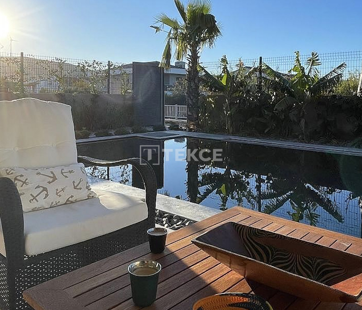 The villa is located in Ilıca, a popular holiday destination in Çeşme, İzmir. Çeşme is ideal for year-round living, thanks to its calm atmosphere and high quality of life. The area offers easy access to beaches, social amenities, gourmet restaurants, natural water sources, fishing, yachting, windsurfing, and other sports. Nearby Alaçatı stands out with its blend of modern amenities and traditional architecture. In recent years, the region has grown increasingly popular, attracting both international and local tourists with events like the Alaçatı Ot Festival, which celebrates the area’s natural surroundings and Aegean culinary heritage.