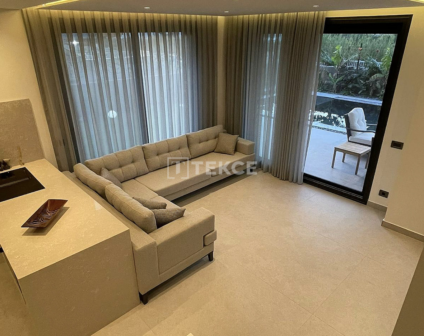 The villa for sale in İzmir, Çeşme is located 300 m from the market, 500 m from the cafes and restaurants of Alaçatı Bazaar, 600 m from Ilıca Beach, 6.4 km from Alaçatı Marina, 6.9 km from Ayayorgi Bay, 8.5 km from Çeşme Marina, 72 km from the center of İzmir, and 88 km from Adnan Menderes Airport.