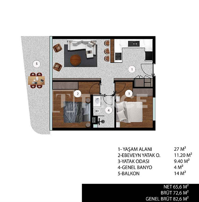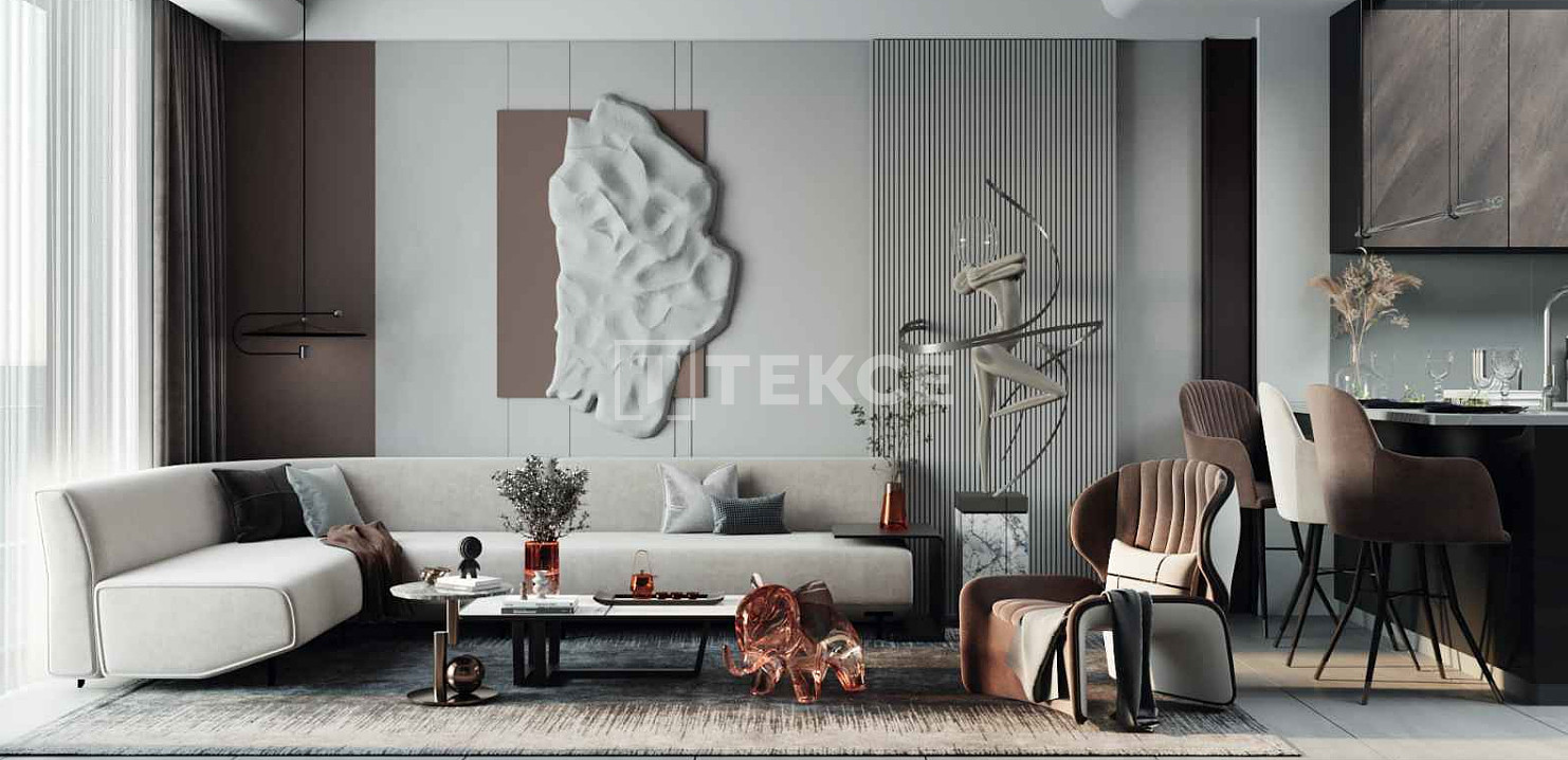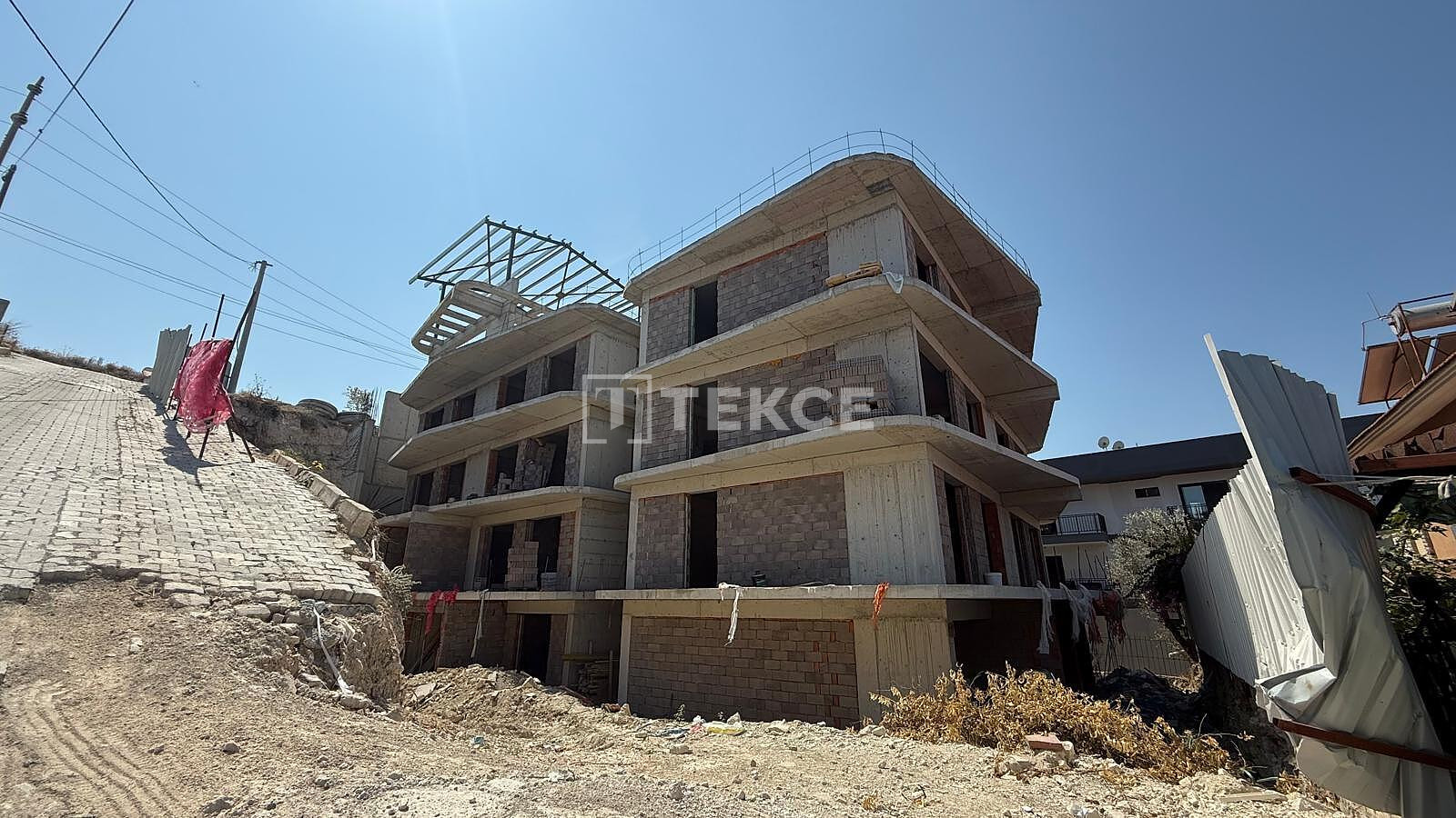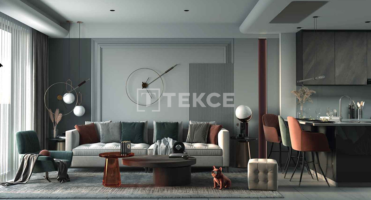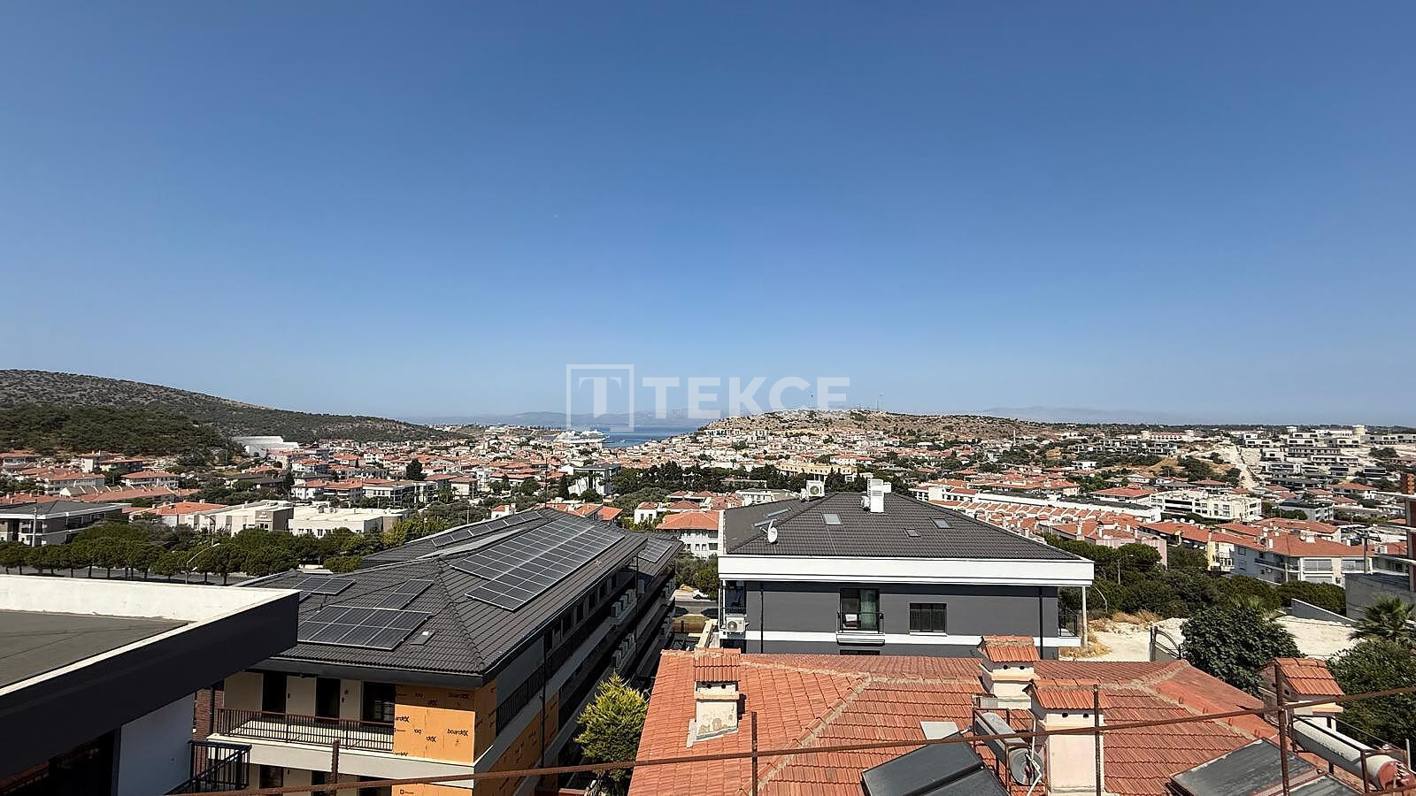 Apartments for sale in İzmir are located 300 meters from the nearest market, 500 meters from Çeşme town center, and 1.2 km from the sea and beach. They are also 2 km from the marina, restaurants, grocery stores, and pharmacies; 2.2 km from the hospital; 13 km from Alaçatı Port Surf Center; and 95 km from Adnan Menderes Airport.