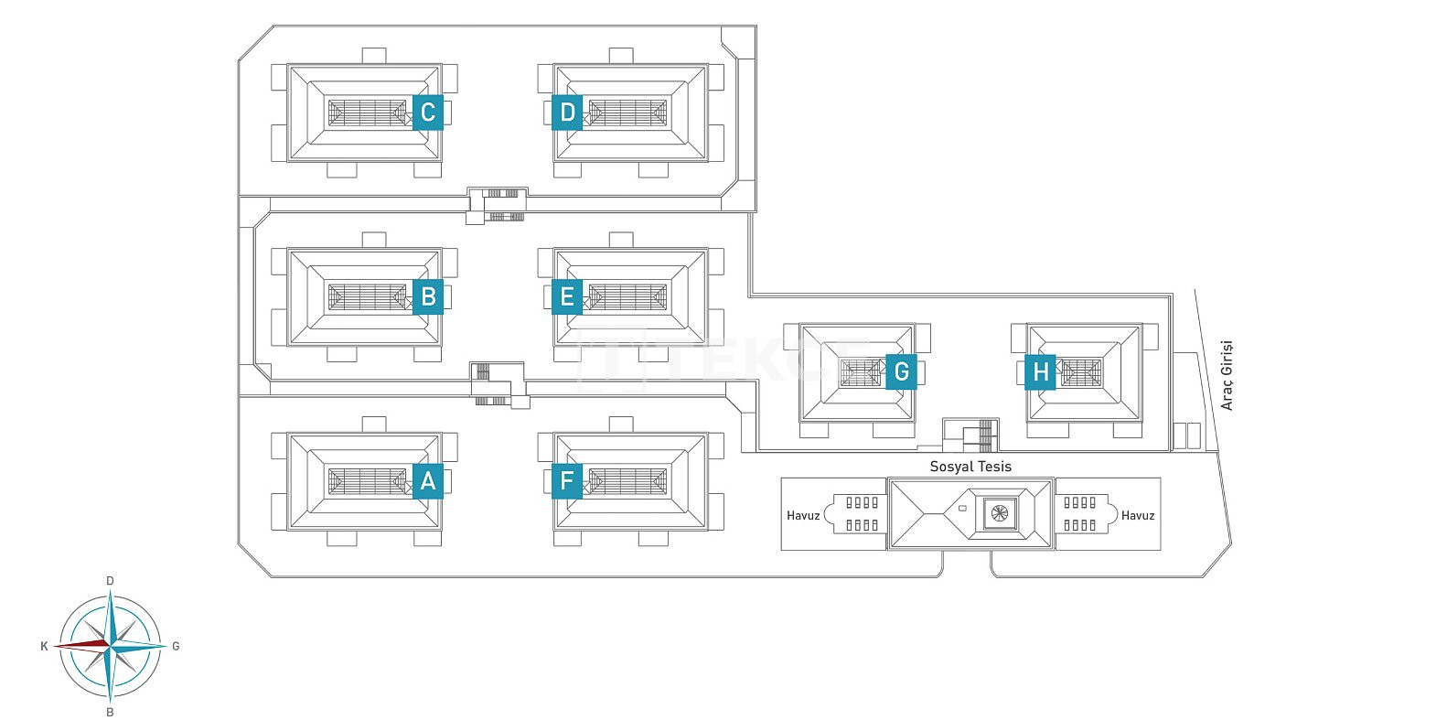 Built on a 15,650 m² area, the complex includes 8 blocks and 132 apartments, offering luxury and quality in 1-bedroom, 2-bedroom, 2.5-bedroom, and 3-bedroom units with large balconies or garden terraces. On-site features include indoor/outdoor parking, EV charging, sports and activity areas, shared pools, sunbathing terraces, sauna, steam room, café, lobby, generator, water tank, 24/7 security, cleaning services, technical support, gardening, and meeting rooms.