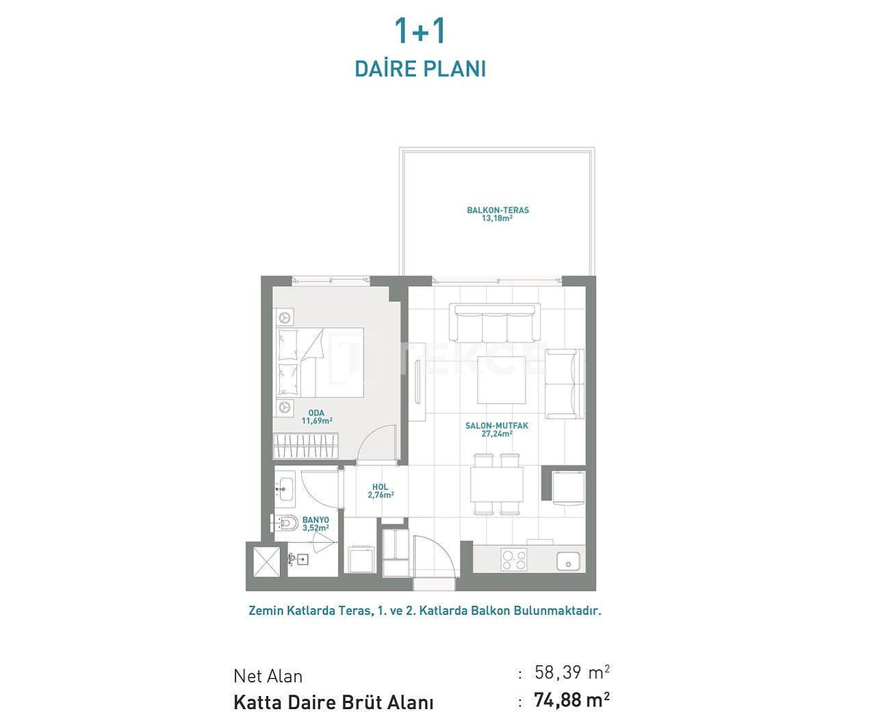 The apartments for sale in İzmir are located 200 m from the market, 1.2 km from restaurants, 1.5 km from the beach, 10 km from the marina, 6 km from the hospital, 11 km from Alaçatı Port Surf Center, and 85 km from Adnan Menderes Airport.
