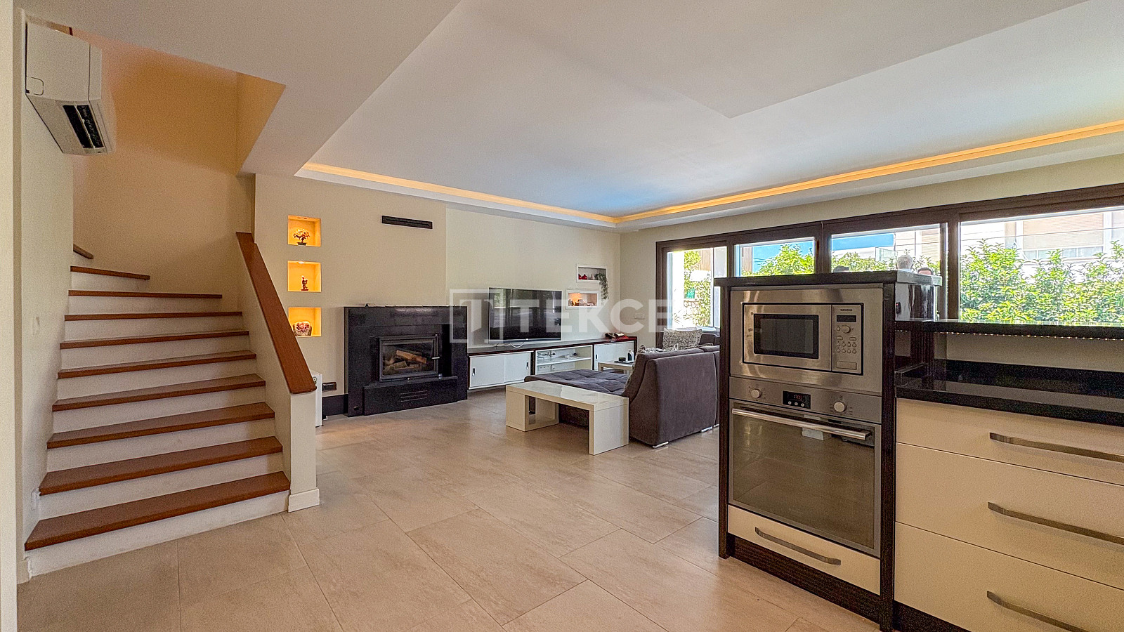 This villa for sale in İzmir is located 300 meters from the nearest convenience store, 500 meters from the cafés and renowned restaurants in Alaçatı Çarşı (town center), 3 km from Ilıca Beach, 5.5 km from Alaçatı Marina, 9.5 km from Ayayorgi Bay, 10 km from Çeşme Marina, 70 km from İzmir city center, and 85 km from Adnan Menderes Airport.