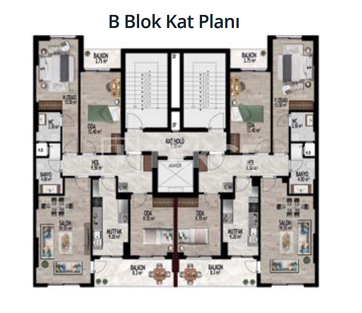 Located on a 1.750 m² wide plot, the two-block project was built as 9-storey. In the project where all apartments in the family concept consist of 3 rooms and a living room, there is a video intercom system, outdoor parking area and elevator in the building.