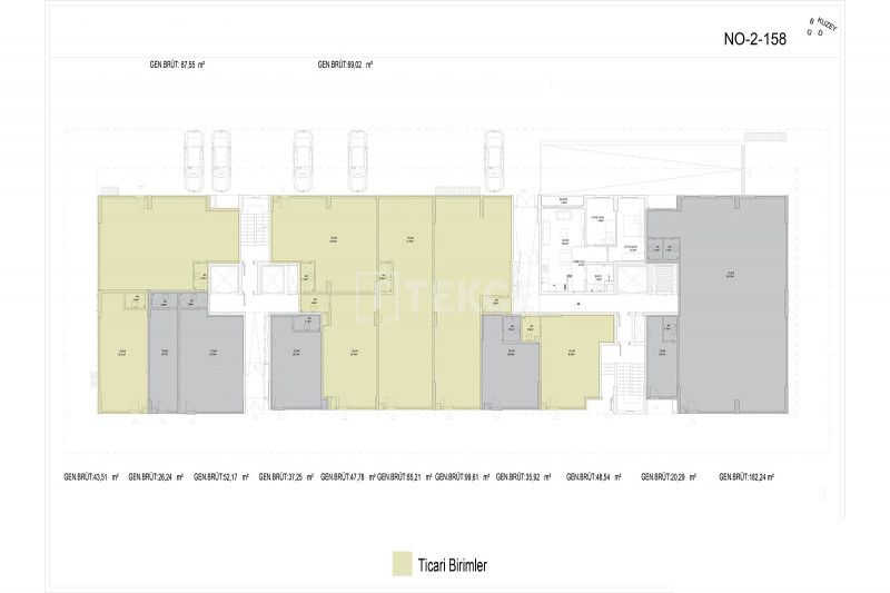 The offices for sale in Mersin are part of a branded project built on a 683 m² plot, consisting of a single block with a basement, ground floor, and 5 upper floors. These commercial offices attract attention with their prime location and offer amenities such as outdoor and indoor parking, a generator, waiting areas, a café-restaurant, and a lobby.