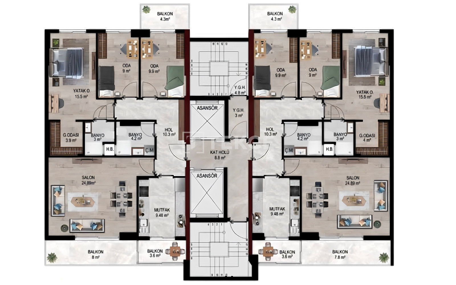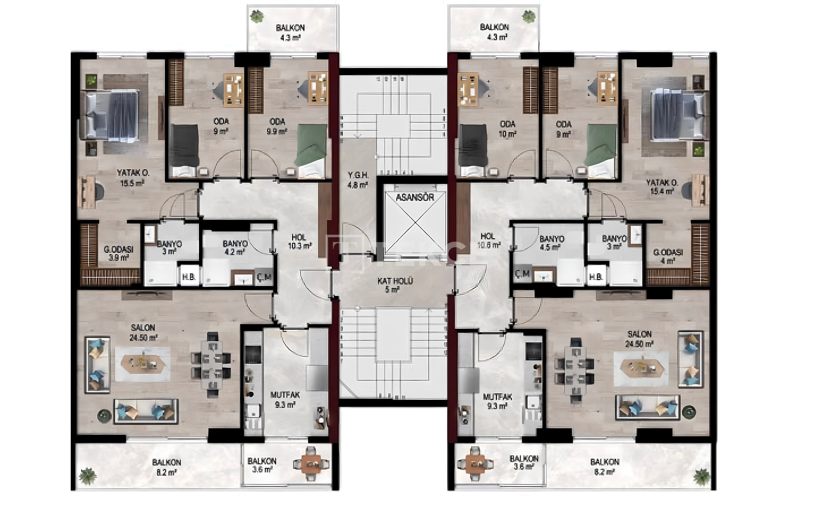 İzmir apartments for sale are located in an advantageous location that offers easy access to the city’s most prestigious shopping and business centers and all the opportunities offered by the city center. In the location where commercial properties are located, skyscraper projects with different concepts will also be implemented in the future. In the region where the population and commercial activities are dense, transportation facilities such as hospitals, private schools, universities, residence buildings, and the metro are close and within walking distance. The apartments are located 50 m from the supermarket, 200 m from the pharmacy, 250 m from the hospital, 1.3 km from the metro, 4 km from the shopping mall, 7 km from the beach and İzmir Alsancak Port, 7.5 km from İzmir Kordon walking paths and parks, and 30 km from Adnan Menderes Airport.
