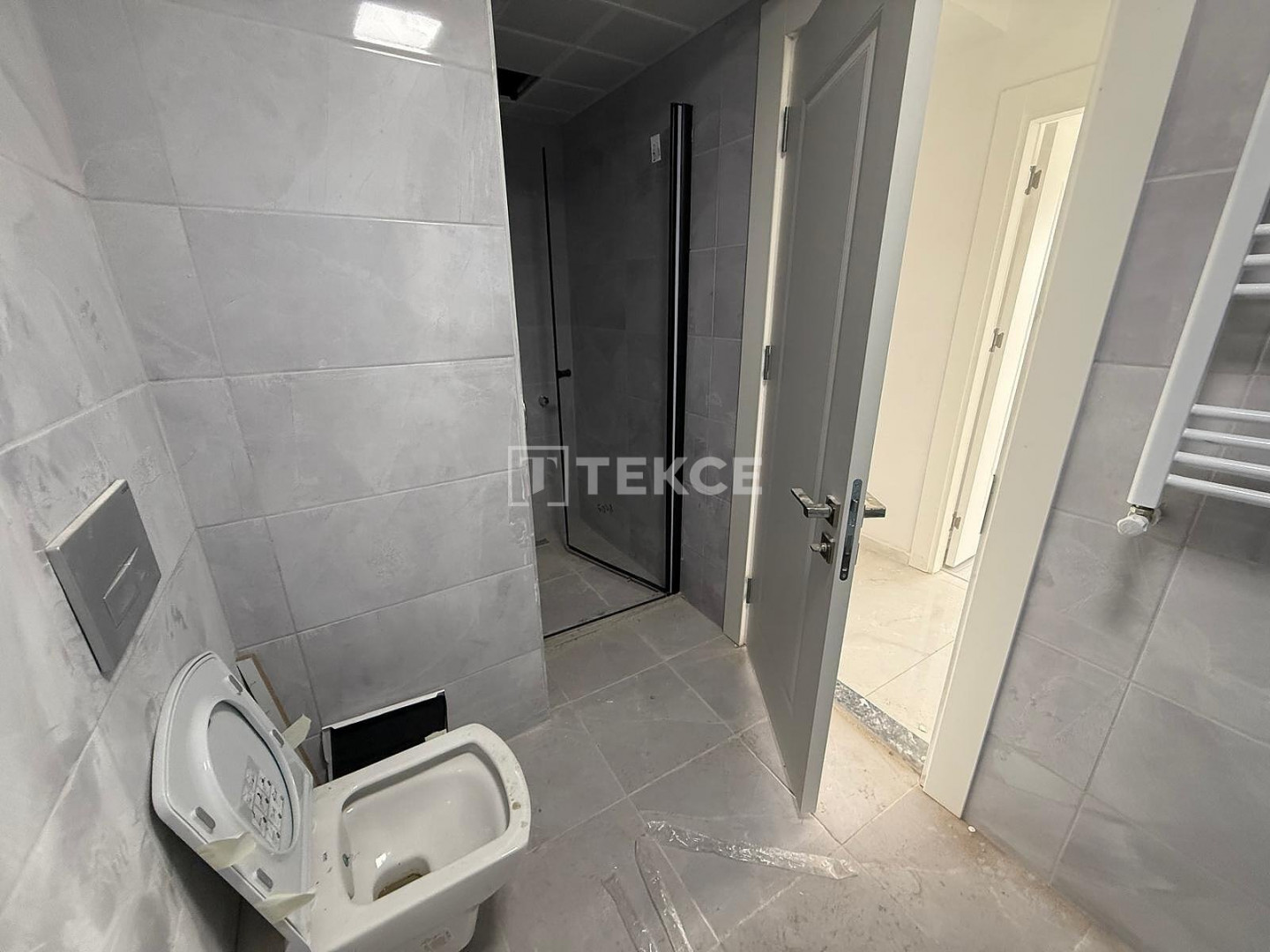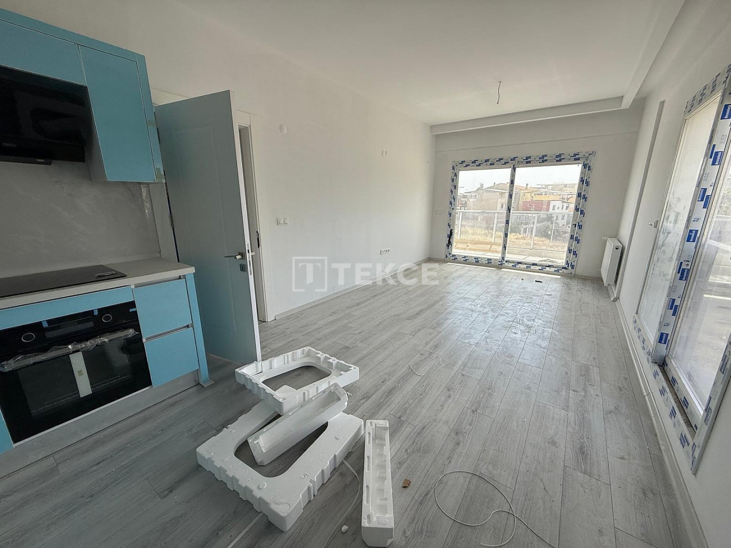 The apartments for sale in İzmir are delivered move-in ready with options for open or closed kitchens, built-in kitchen cabinets, a triple built-in kitchen appliance set, a steel entrance door, walk-in closet, high-quality bathroom cabinets, ceramic and laminate flooring, double-glazed PVC window systems, and a natural gas combi boiler system.