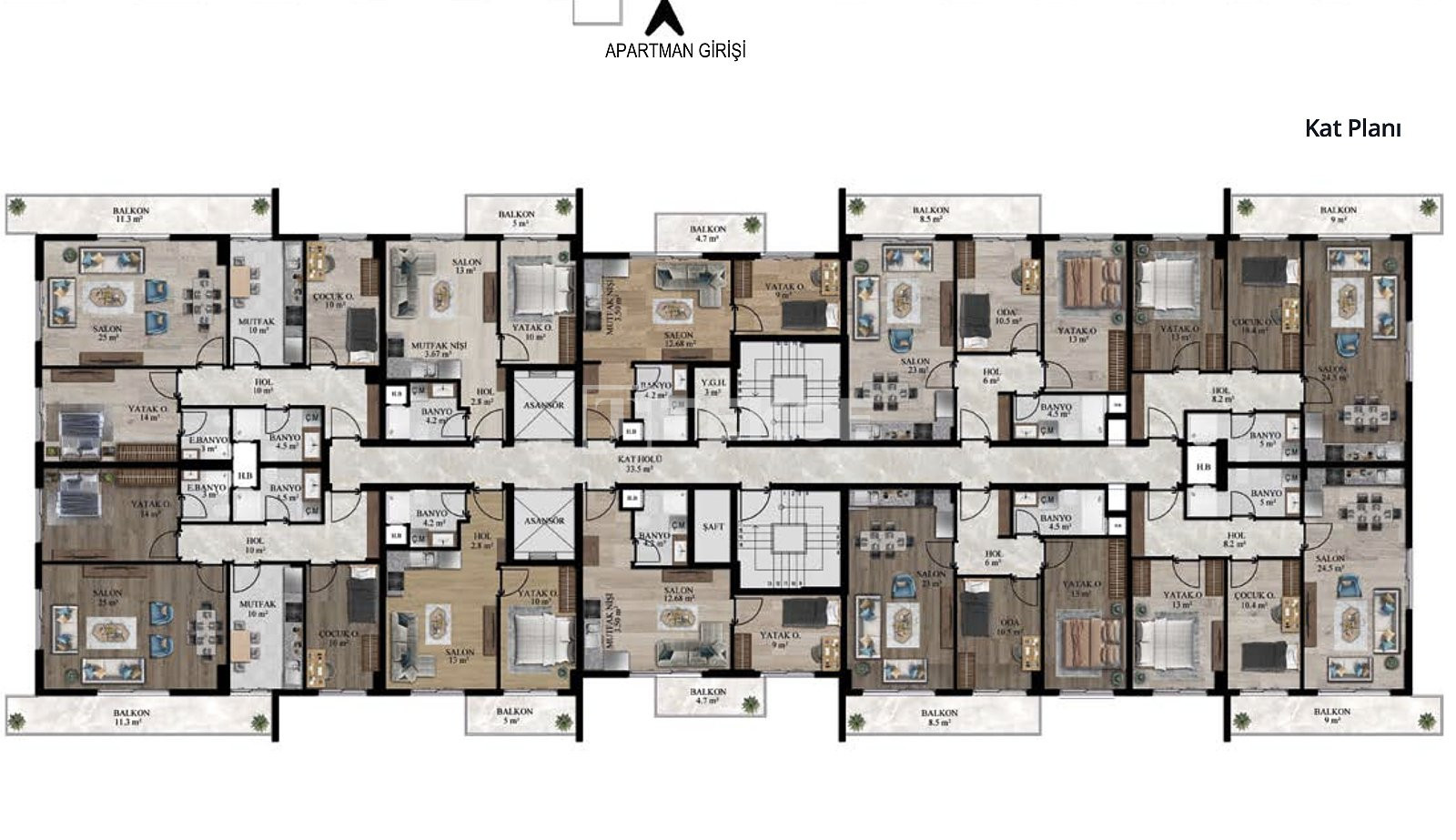 The project in Çiğli district consists of a single 9-story block. The newly constructed building provides many features to its residents, such as a video intercom system, elevator, on-site caretaker, and open parking.