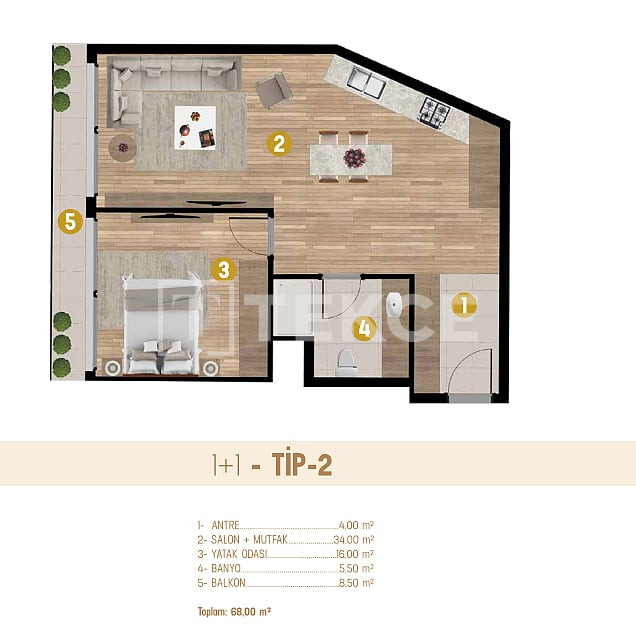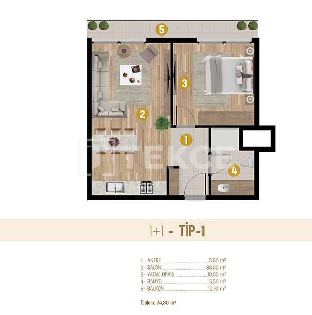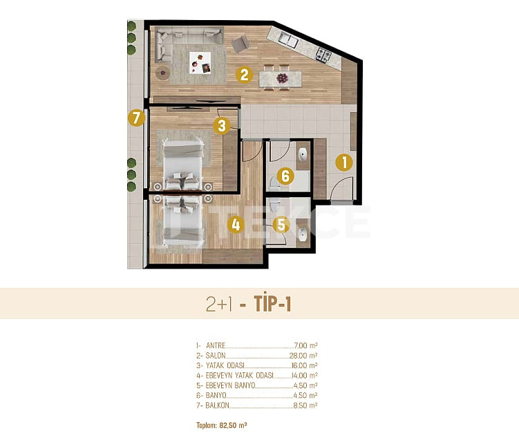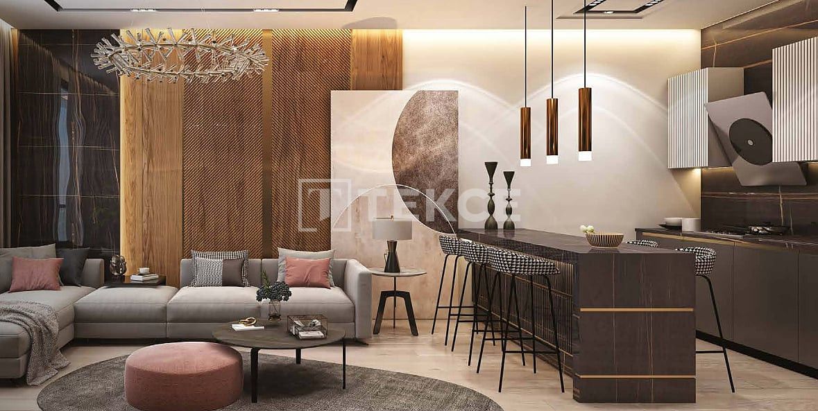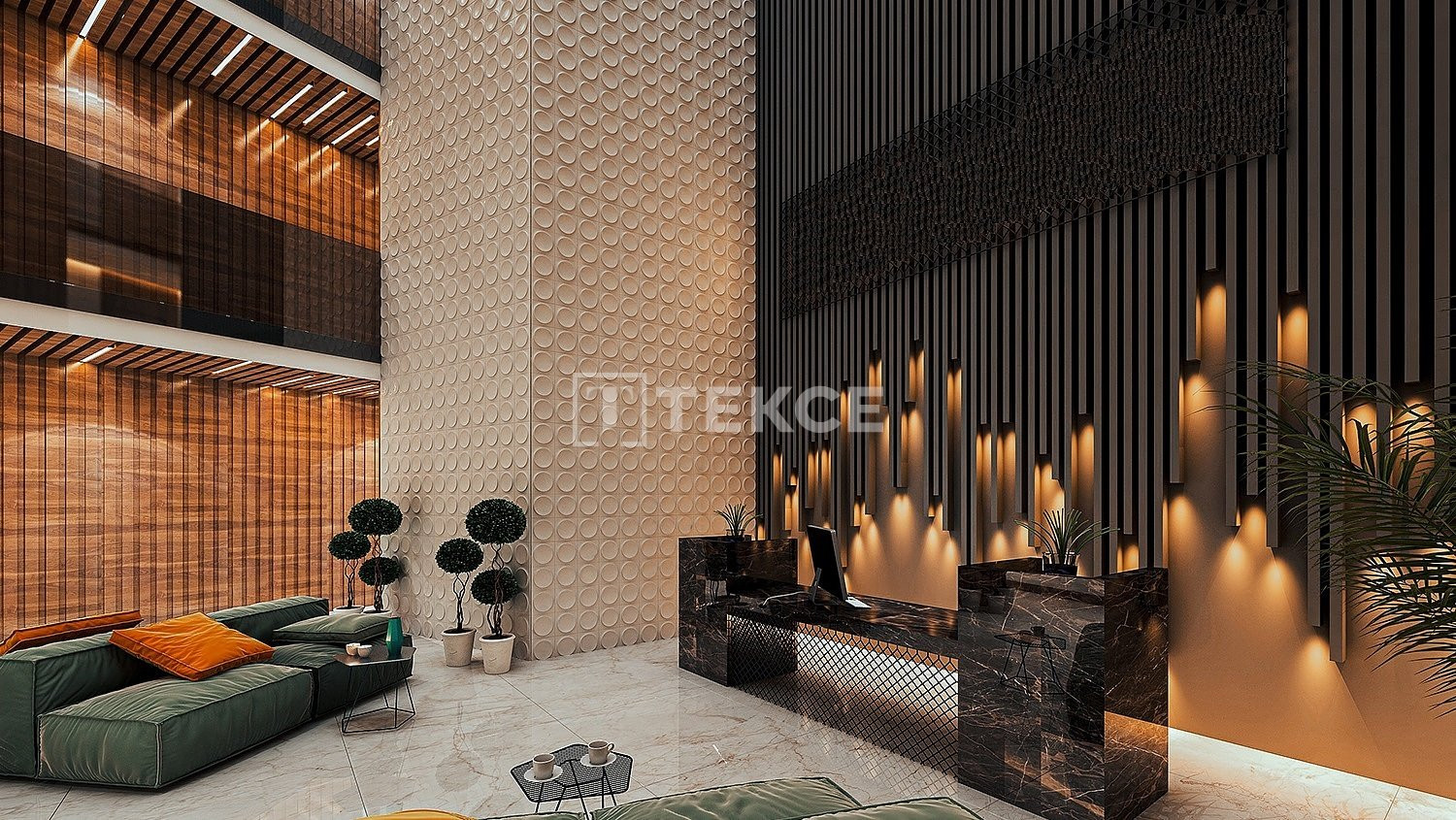 These flats for sale in İzmir are located directly on the main road, where all daily needs can be met. Flats are situated at 50 meters to a private school, 1.2 km to the metro station, 2 km to the hospital, 6 km to the shopping mall, 10 km to the Sasalı Zoo, 36 km to the airport, and 40 km to the Blue Flag beaches of Foça.