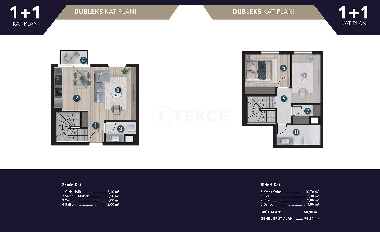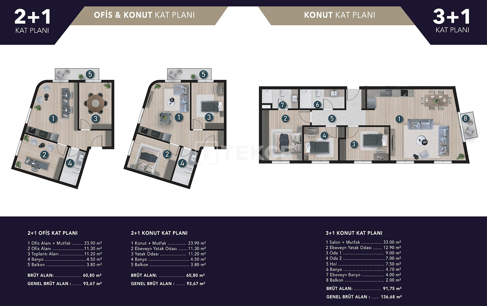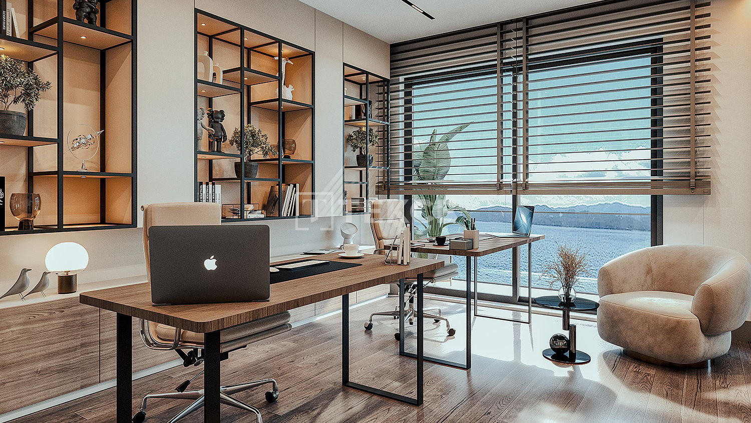 The apartments feature open-plan kitchens, balconies, and en-suite bathrooms. They are equipped with shower cabins, customized bathroom and kitchen cabinets, 4-piece built-in kitchen appliances, smart home technologies, VFR systems, aluminum windows, laminated parquets, and ceramic flooring.