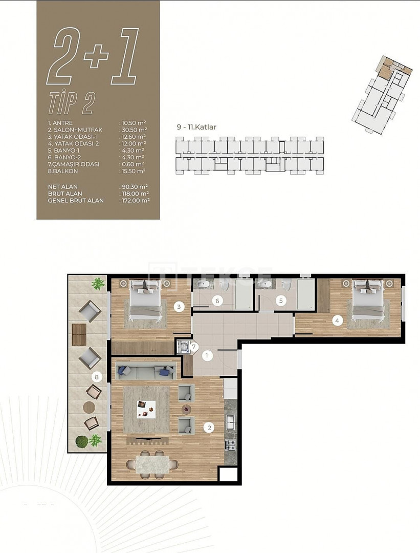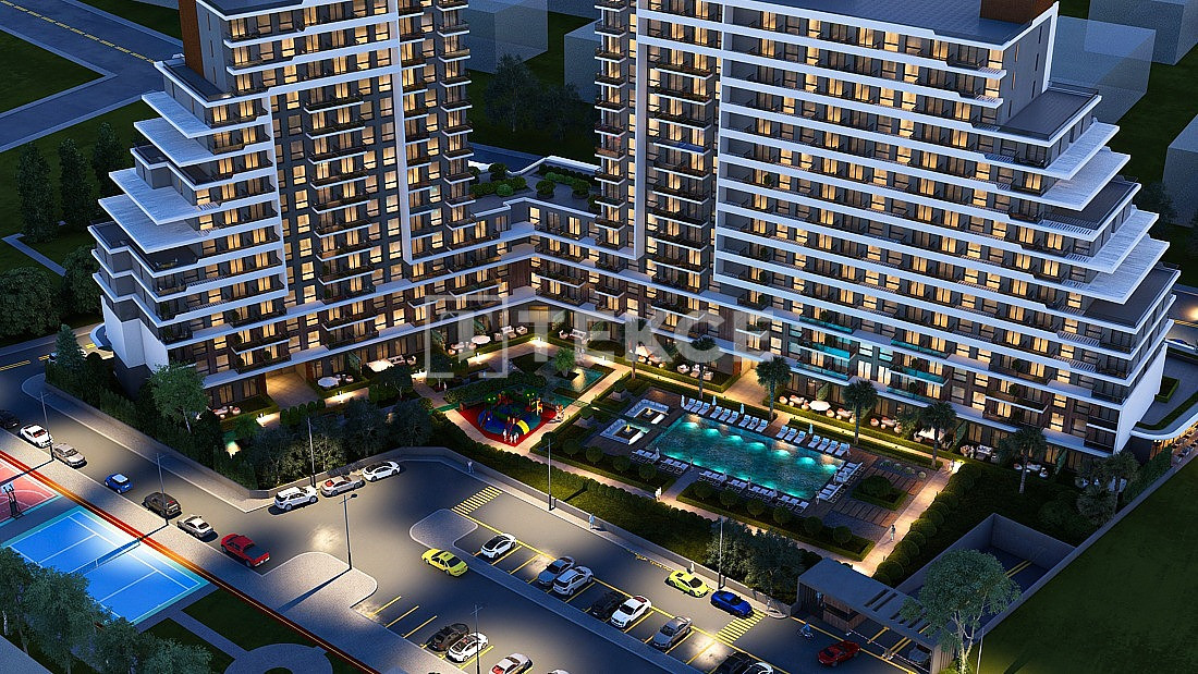 Built on a 6,000 m² plot, the complex offers a range of luxury amenities, including indoor and outdoor swimming pools, sunbathing areas, a fire pit near the outdoor pool, and indoor parking for residents with outdoor parking for guests. Residents can also enjoy a sauna, spa, steam room, 24/7 security with surveillance cameras, indoor and outdoor children’s playgrounds, a communal garden, reception services, janitorial services, a BBQ area, and a café. The commercial units within the complex are designed to meet your everyday needs.