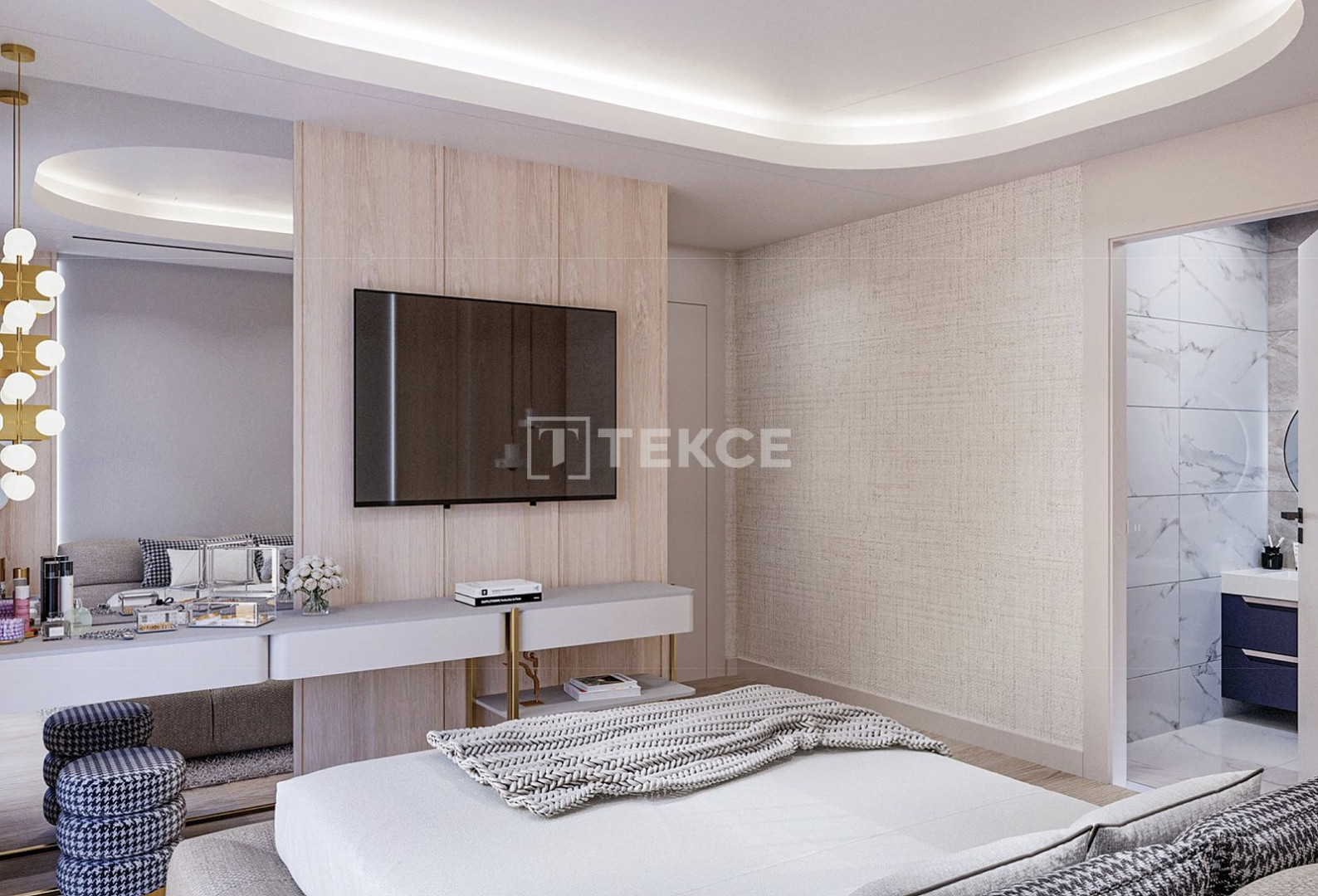 The apartments feature either open-plan or separate kitchens, depending on the layout. Each unit is equipped with a steel entry door, ceramic and laminate flooring, high-quality kitchen cabinets, built-in appliances, double-glazed windows, air conditioning infrastructure, and a video intercom system for added security and convenience.