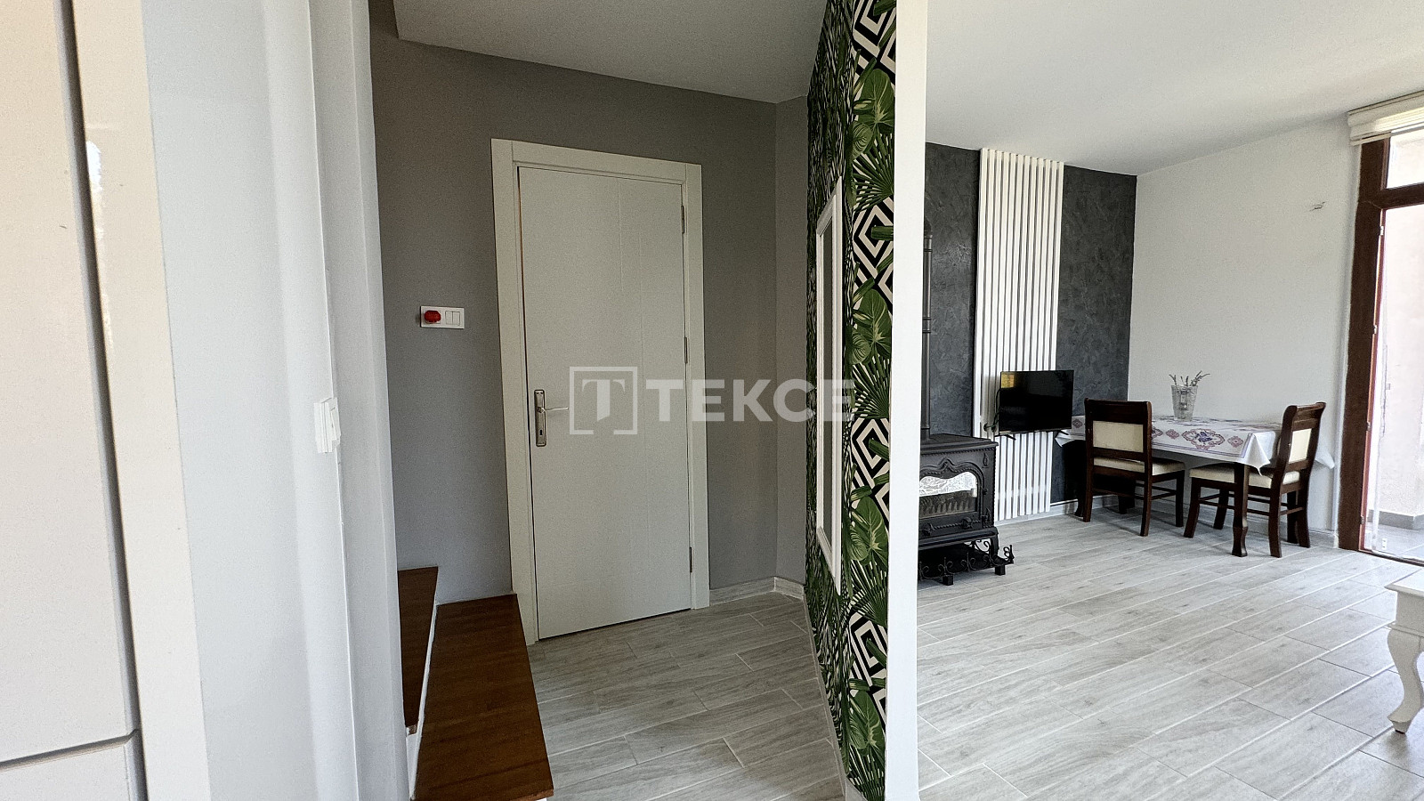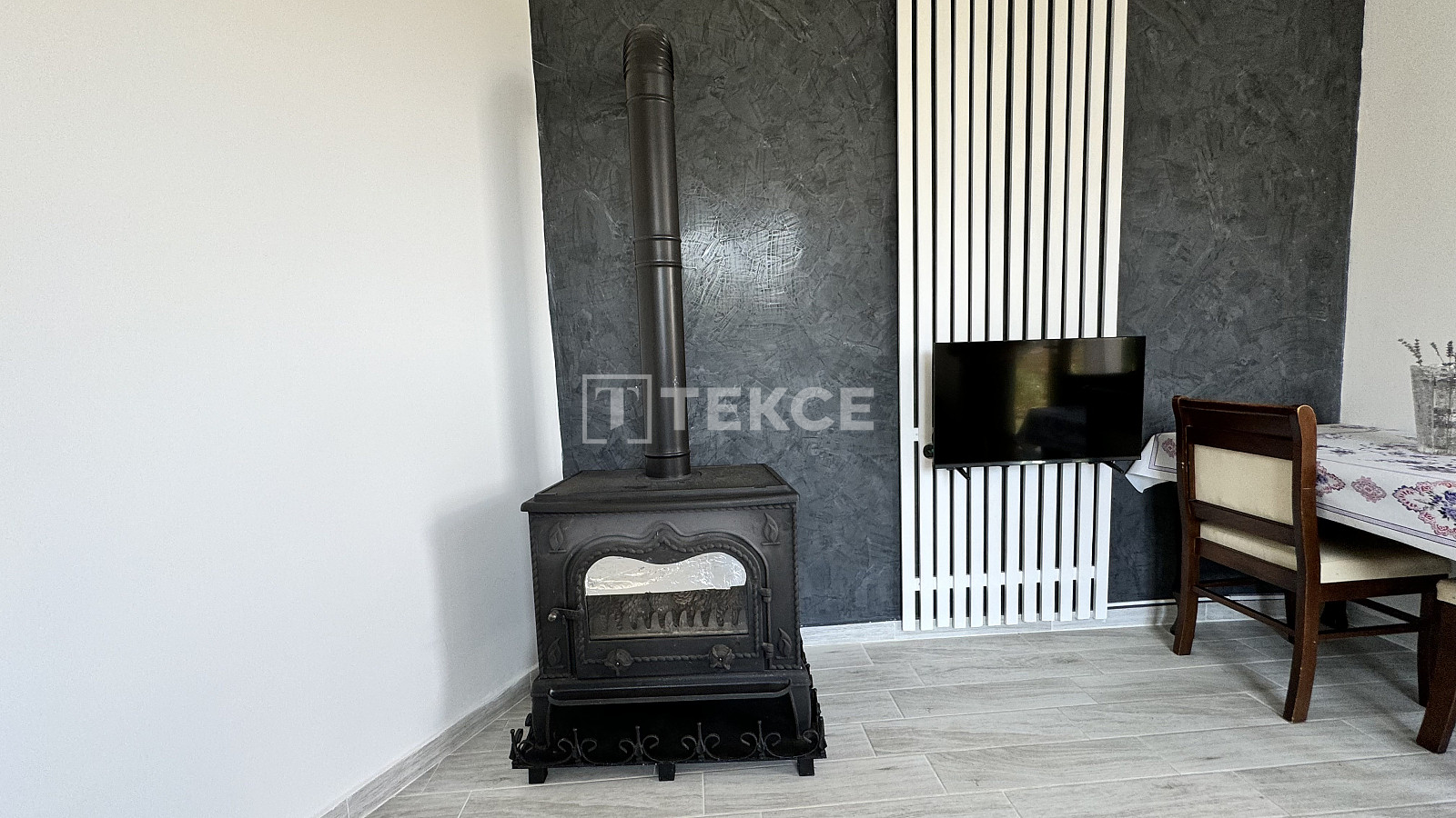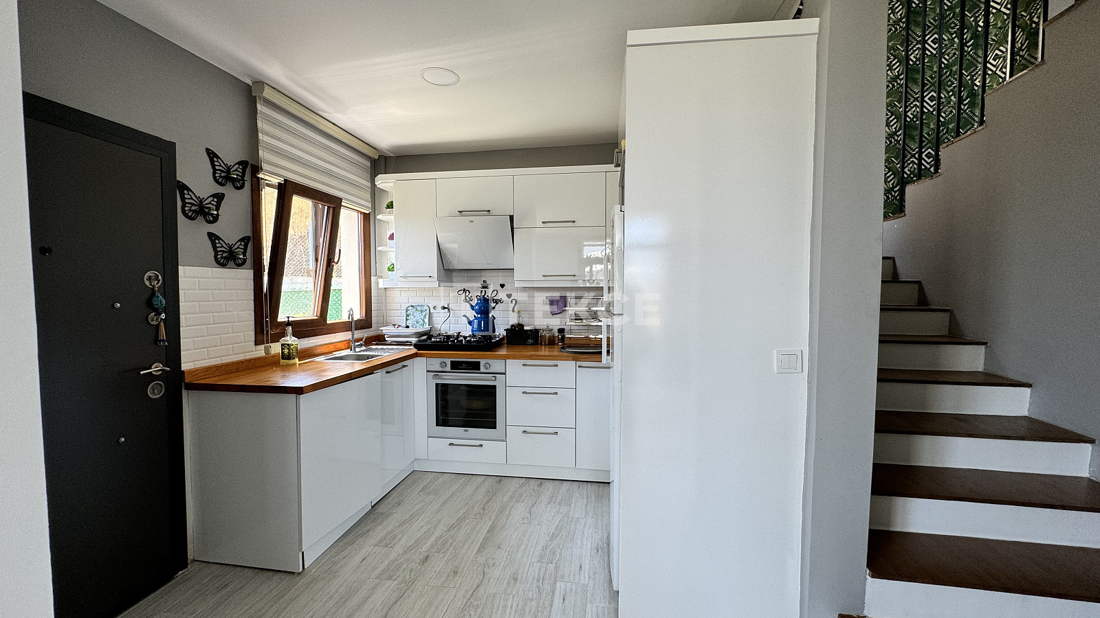 The villa is equipped with double glazing PVC windows, a steel door, ceramic and laminate flooring, veneer ladders with steel materials, high-quality kitchen cabinets, a built-in set, white goods, beds and wardrobes, a TV, a sofa set, lighting products, and a fireplace. This furnished villa is ready to move in.