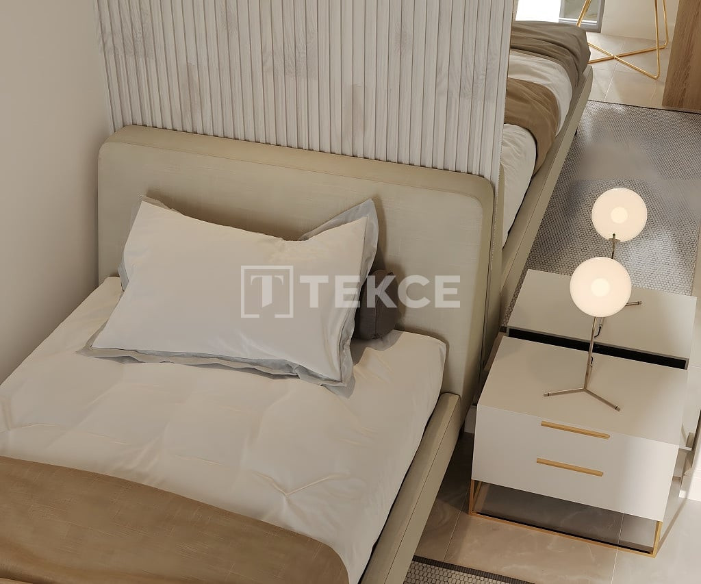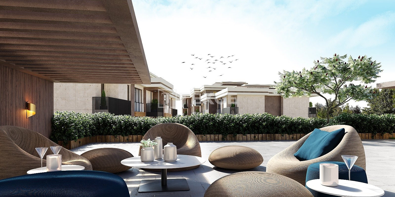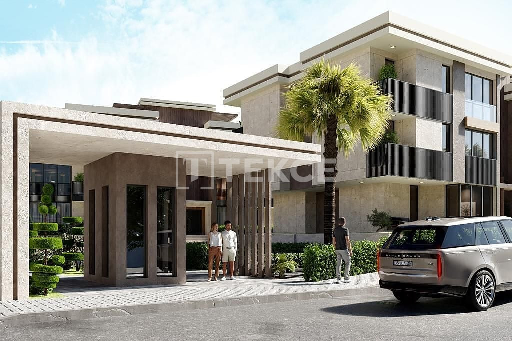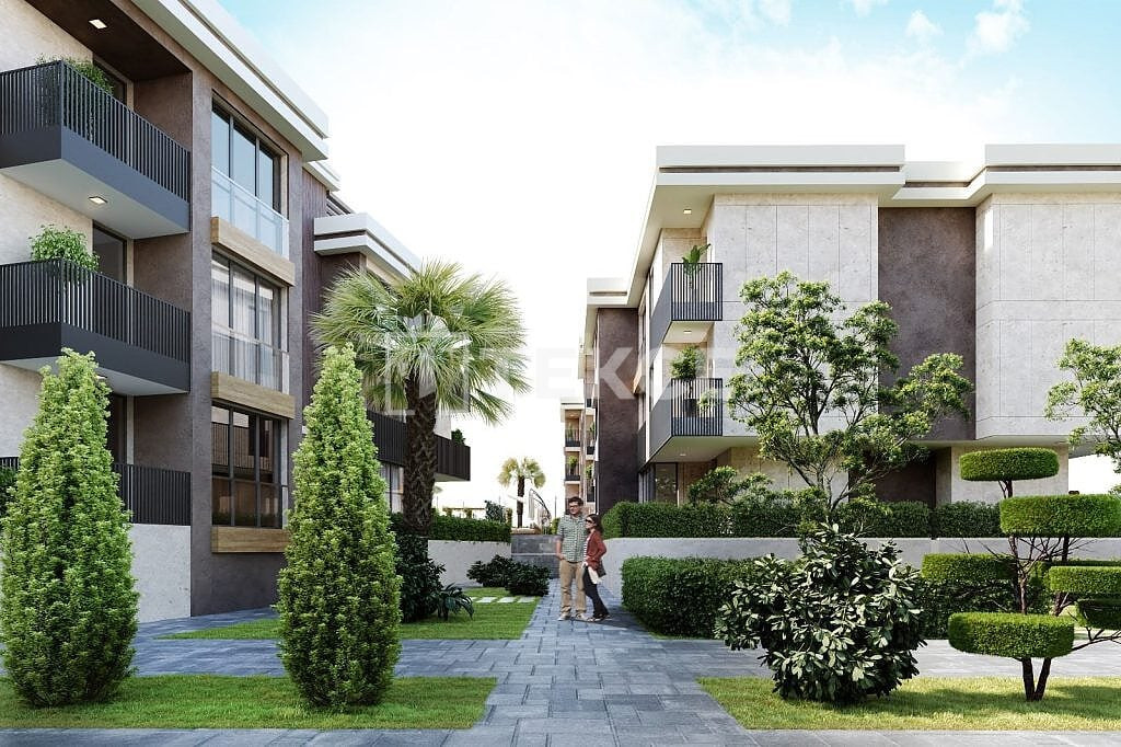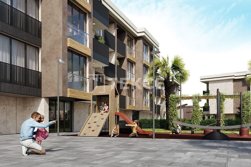 The complex is built on 4.500 sqm of land with a large landscaping area. There are 1 and 2-bedroom apartments in the complex. The complex has an outdoor swimming pool, children’s swimming pool, children’s playground, sauna, spa, walking track, gym, observation terrace, 24/7 security, security cameras, electric vehicle charging station, gazebos, special landscaping areas, rainwater collection and utilization system, and outdoor parking areas. The apartments with garden usage are designed as 1-bedroom and have garden usage areas ranging from 15 to 70 m².
