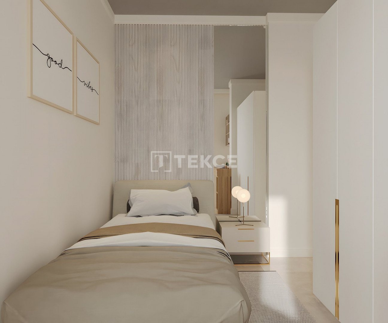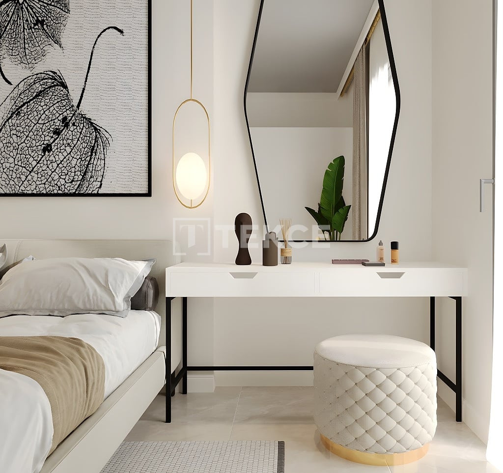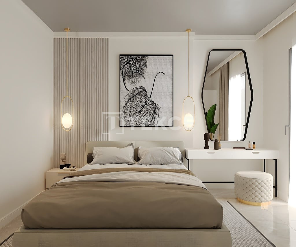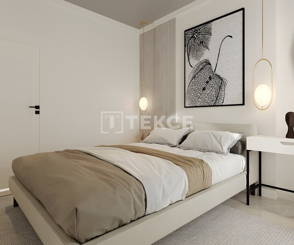 The complex is built on 4.500 sqm of land with a large landscaping area. There are 1 and 2-bedroom apartments in the complex. The complex has an outdoor swimming pool, children’s swimming pool, children’s playground, sauna, spa, walking track, gym, observation terrace, 24/7 security, security cameras, electric vehicle charging station, gazebos, special landscaping areas, rainwater collection and utilization system, and outdoor parking areas. The apartments with garden usage are designed as 1-bedroom and have garden usage areas ranging from 15 to 70 m².