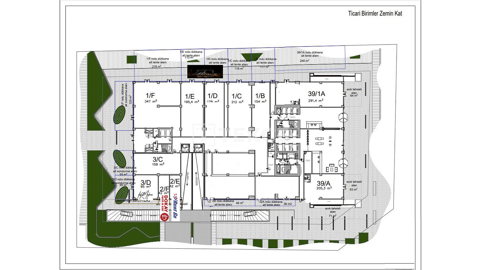 There are 28 commercial properties for sale in the project of 2 towers that include offices and residences, built as 47 floors on a 25,000 square meter wide land. The commercial properties have corporate tenants such as cafes, pubs, cinemas, pharmacies, car rental companies, luxury segment car dealerships, and markets. The properties appeal to many business sectors with their closed interiors, additional exterior semi-open spaces, and seating areas.