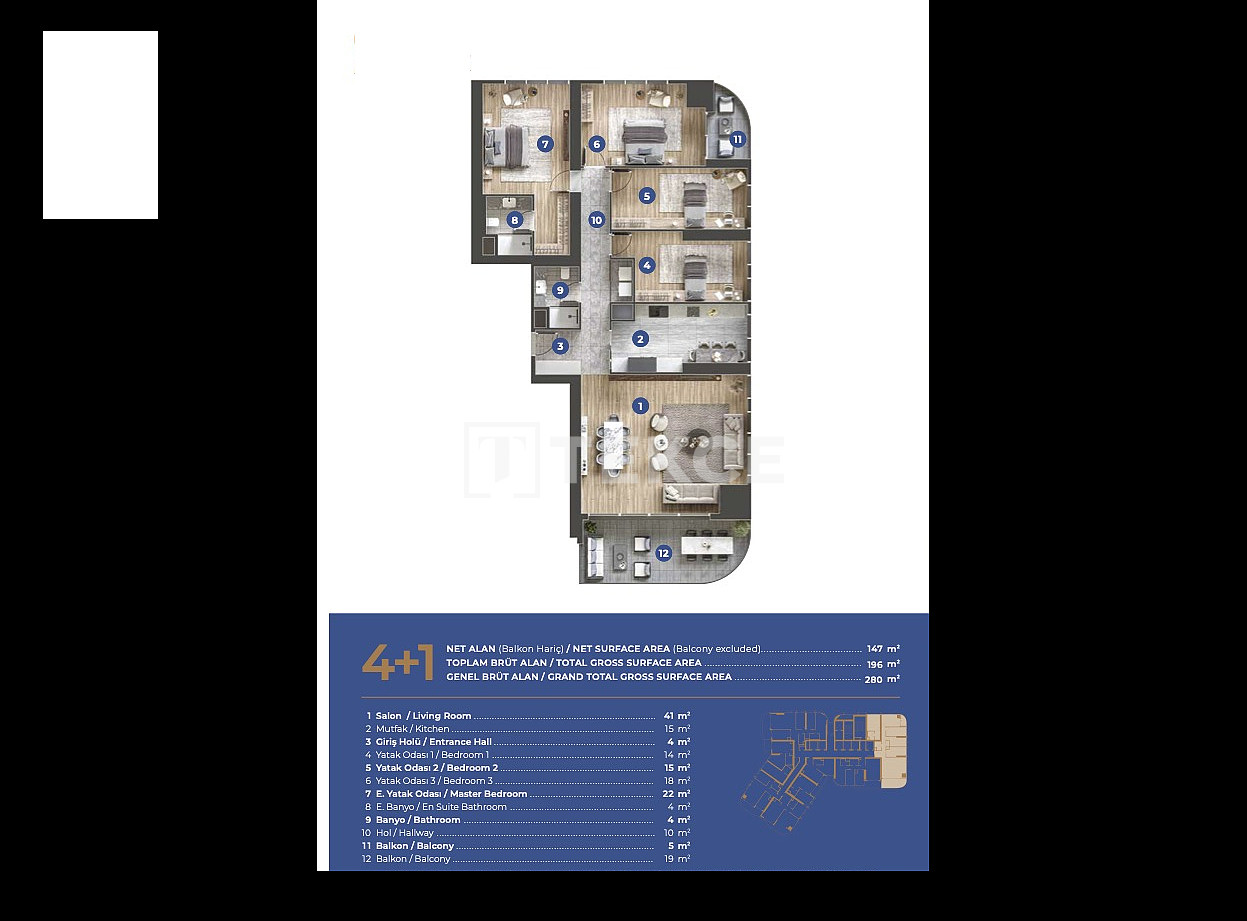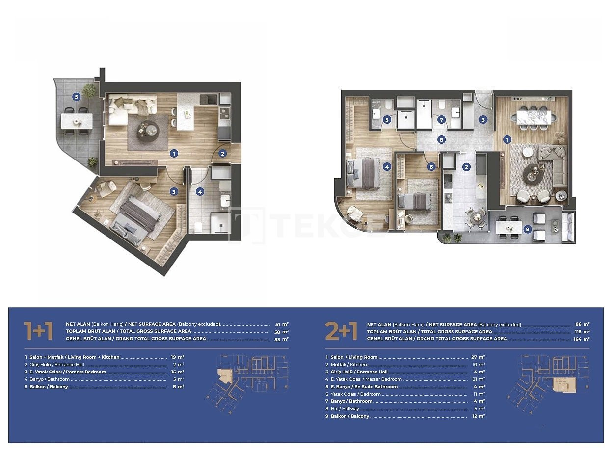 The apartments are situated in the Konak district of İzmir, Turkey. Konak is a popular living space with the famous Kordon coastal walking trail, shopping centers, entertainment facilities, cultural and historical museums, international schools, and sports amenities. Both local and foreign visitors show a big interest in Konak.