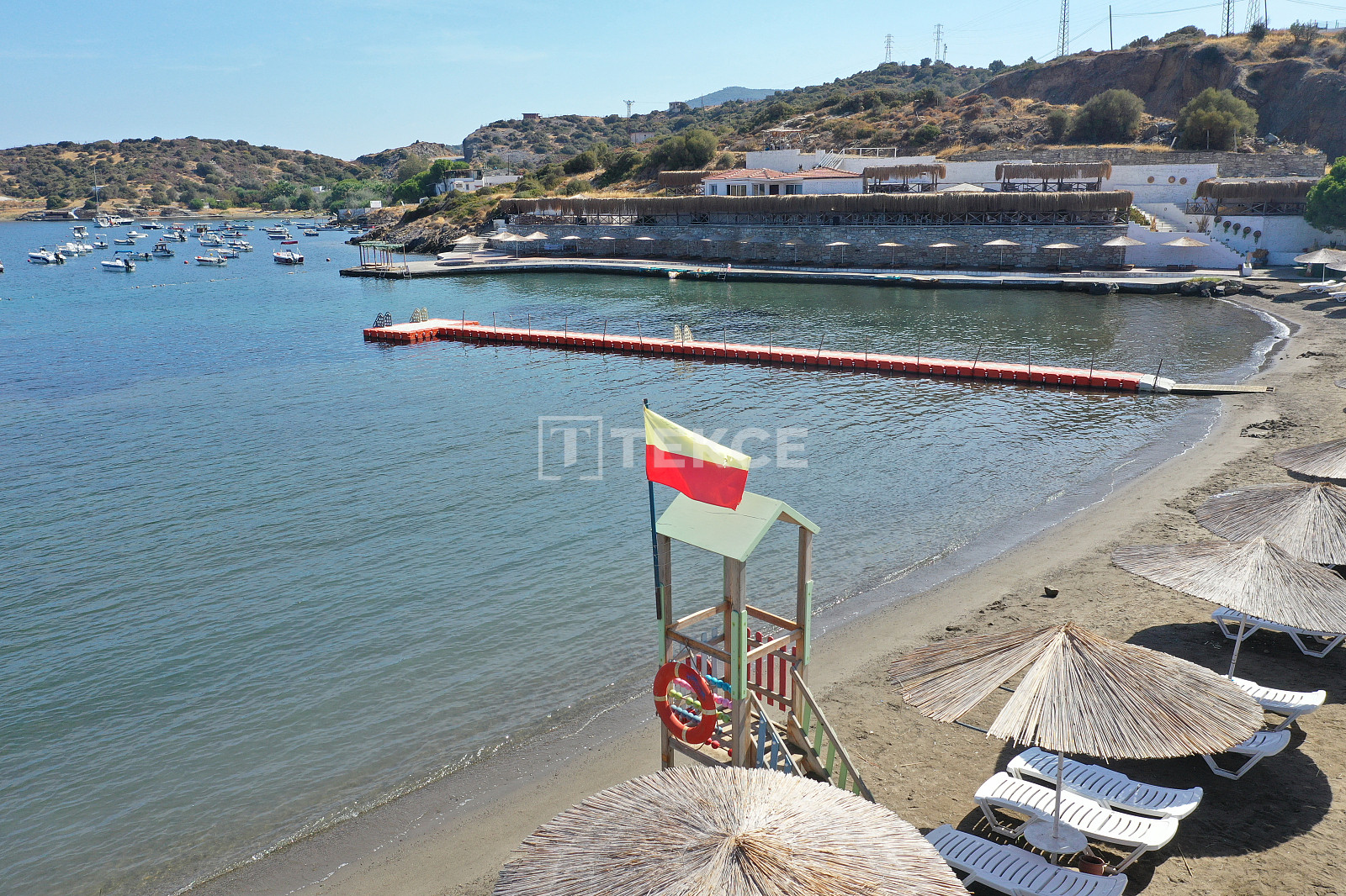 The apartments for sale in İzmir Foça are only 15 meters from the beach, 300 meters from the market, 8.1 kilometers from the pharmacy, 9.1 kilometers from the hospital, 30 kilometers from İzban Train line, 107 kilometers from İzmir Adnan Menderes Airport, and 155 kilometers from the historical Ancient City of Ephesus.